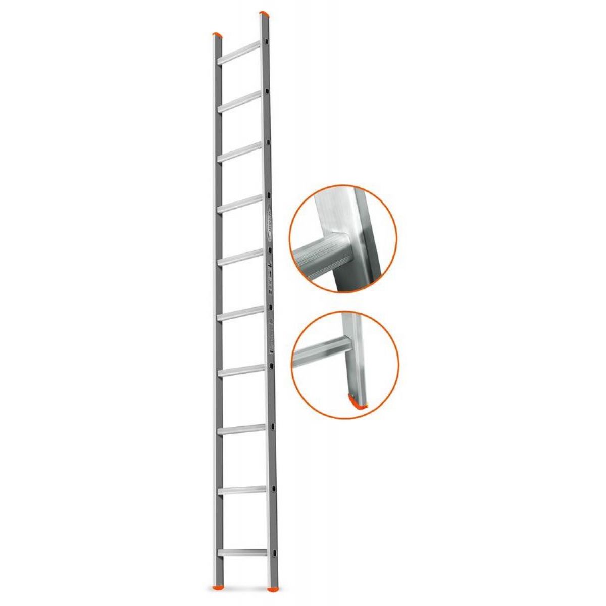 - Направляющие выполнены из эргономичного восьмигранного алюминиевого профиля 62 х 20 мм. Такой профиль удобно держать при переносе лестницы и при подъеме-спуске.