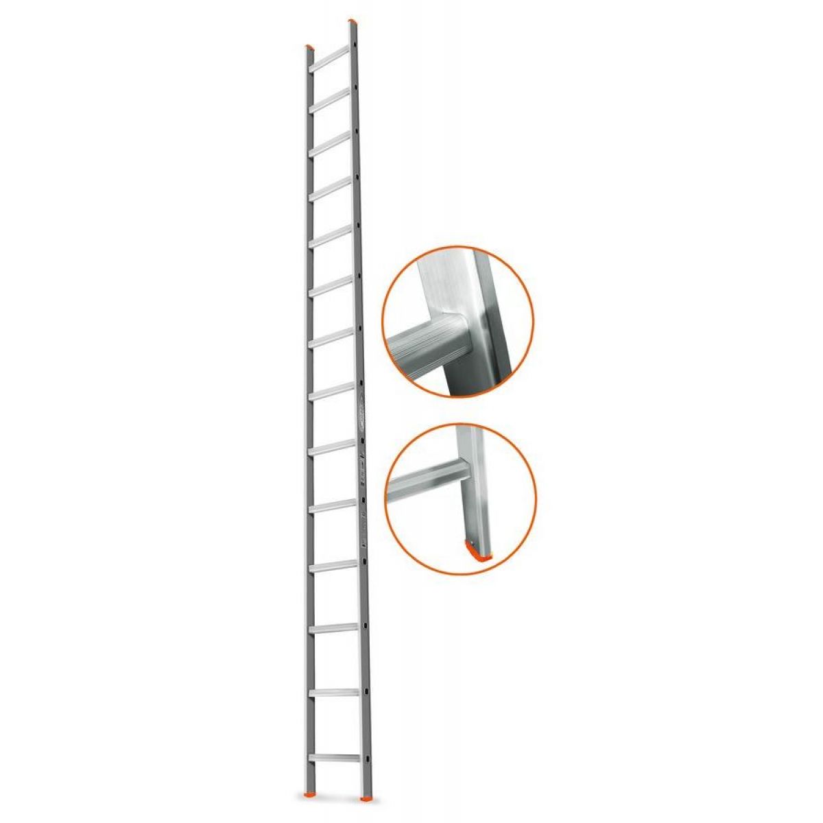 • Направляющие выполнены из эргономичного восьмигранного алюминиевого профиля 62 х 20 мм. Такой профиль удобно держать при переносе лестницы и при подъеме-спуске.