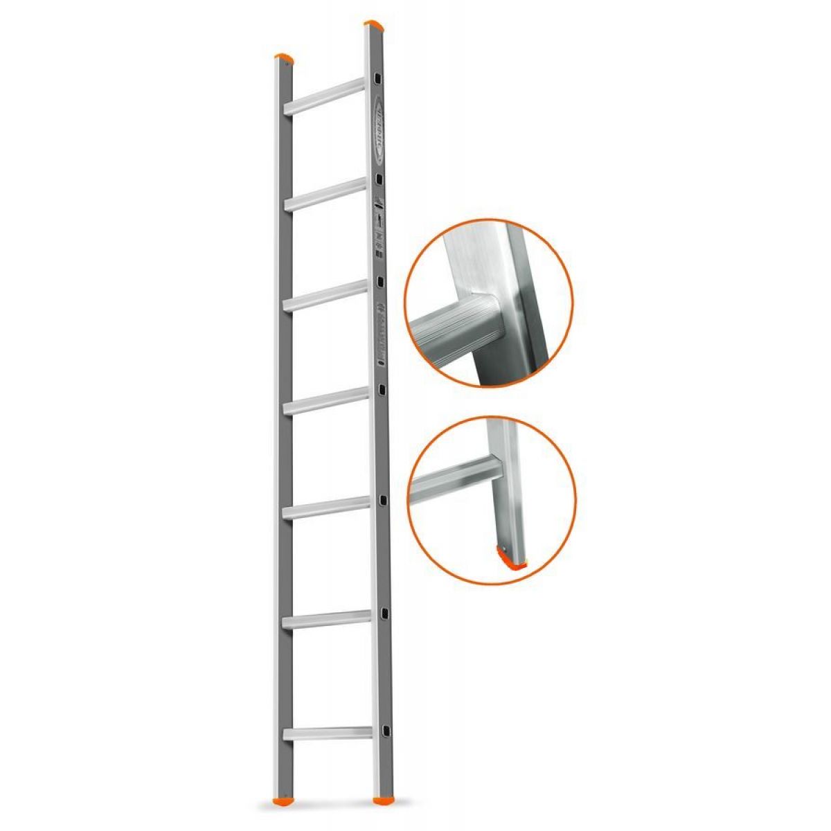 - Направляющие выполнены из эргономичного восьмигранного алюминиевого профиля 62 х 20 мм. Такой профиль удобно держать при переносе лестницы и при подъеме-спуске.