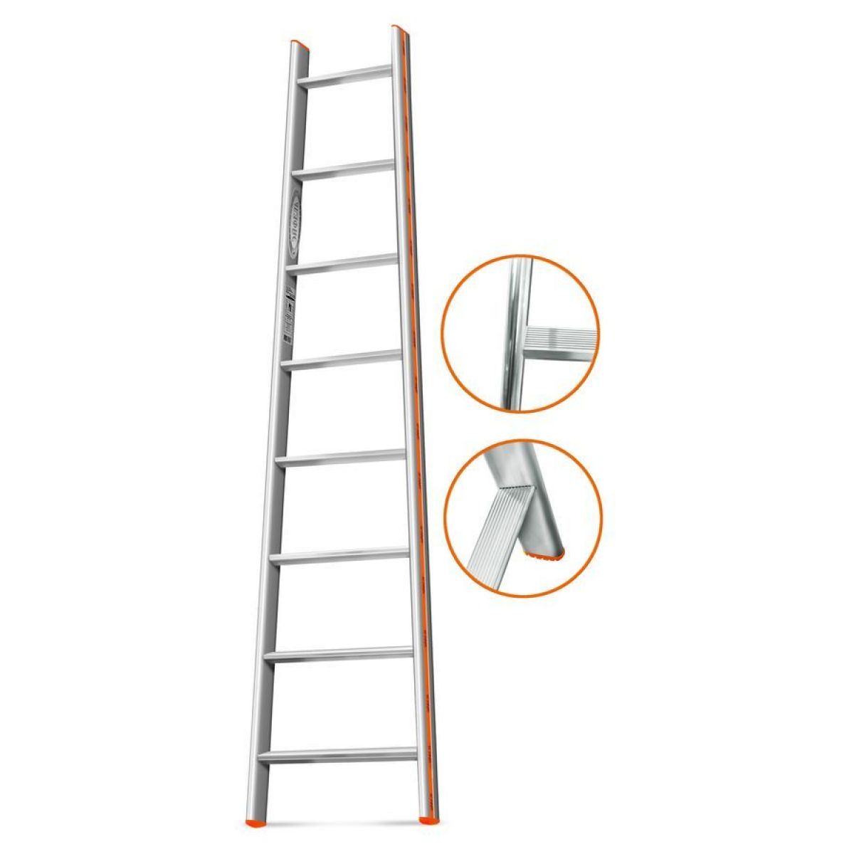 • Ступени выполнены из нескользящего профиля шириной 63 мм с глубокой насечкой. Ступени располагаются строго горизонтально при приведении лестницы в рабочее положение, т.е. расположены под углом к направляющим. Комфортная работа на лестницах с широкими ступенями ощущается при длительной нахождении на высоте.