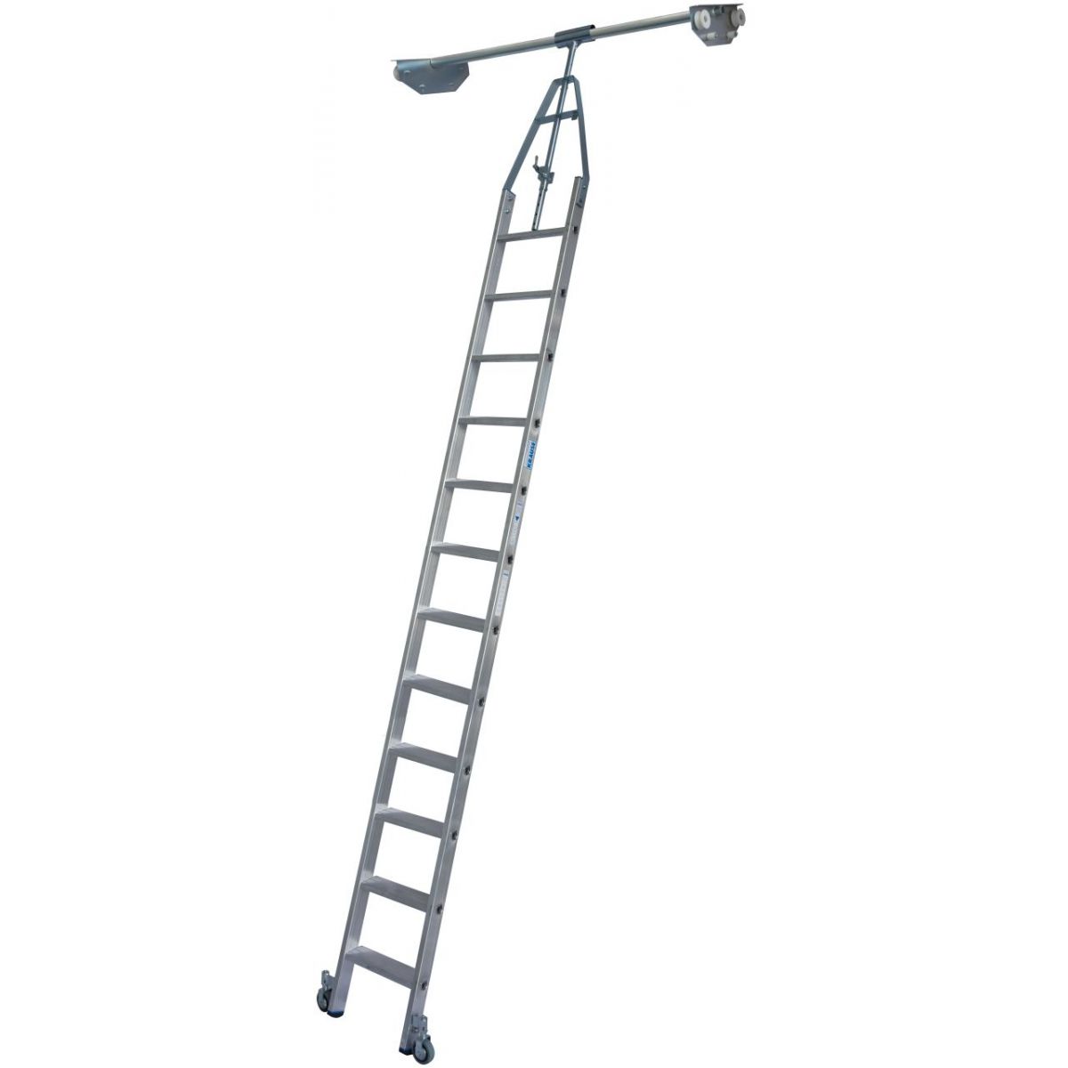• Алюминиевая лестница поворотная для двухрядных стеллажей, со ступеньками, со