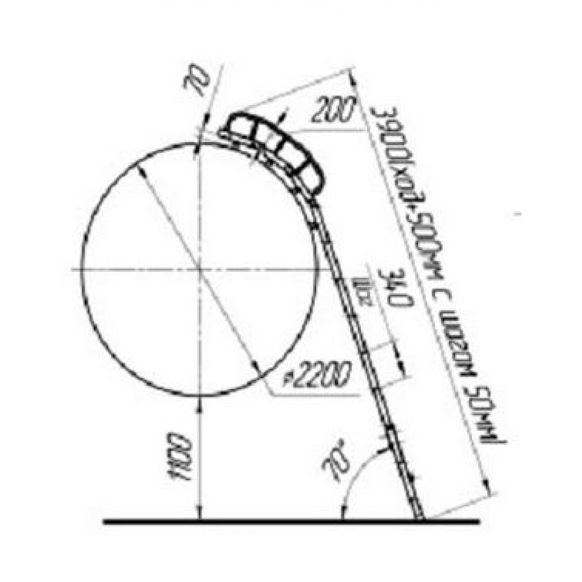 Подъем цистерны от земли на 1,1 метр.