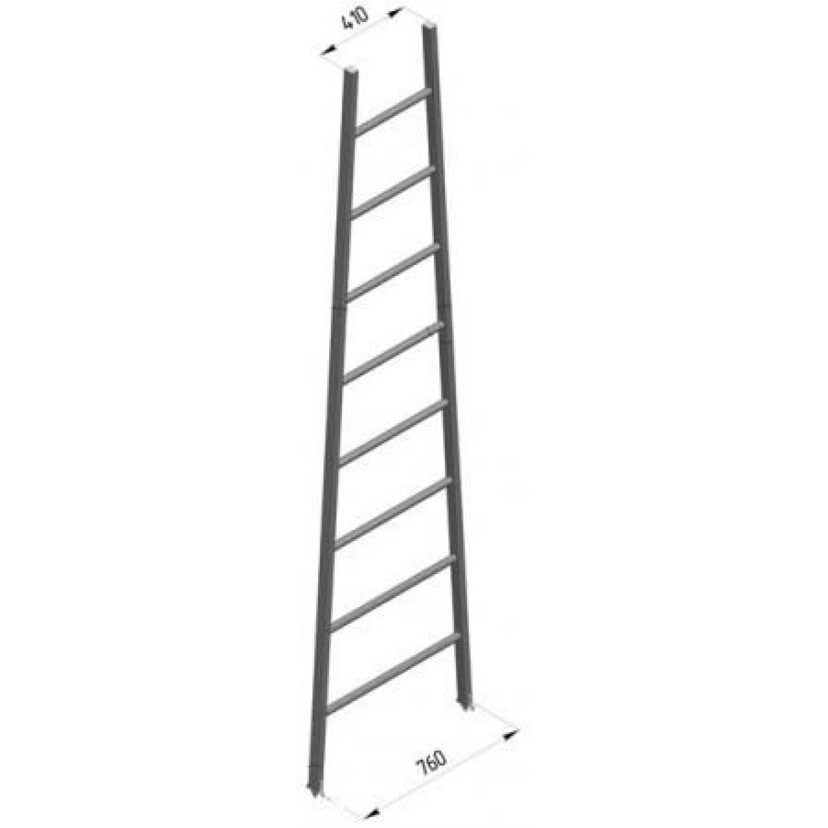 - Лестница выполнена из толстостенных алюминиевых профилей, что гарантирует долговечность в промышленных условиях. Форма трапеции придает лестнице дополнительную устойчивость и защищает от опрокидывания вбок