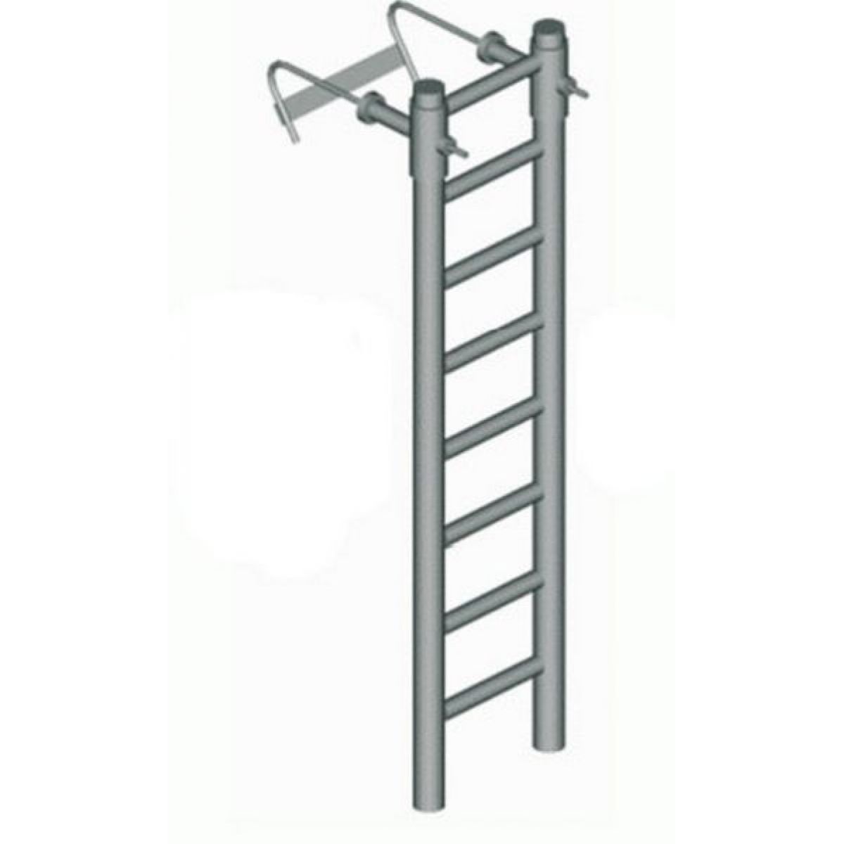 • Лестницы навесные алюминиевые с кронштейнами ЛНАстк-2,5 и ЛНАстк-4,0 изготовлены из профильной трубы 30х40. Ступени из круглой рифленойтрубы d30. Допустимая нагрузка не более 1200Н (120 кгс).