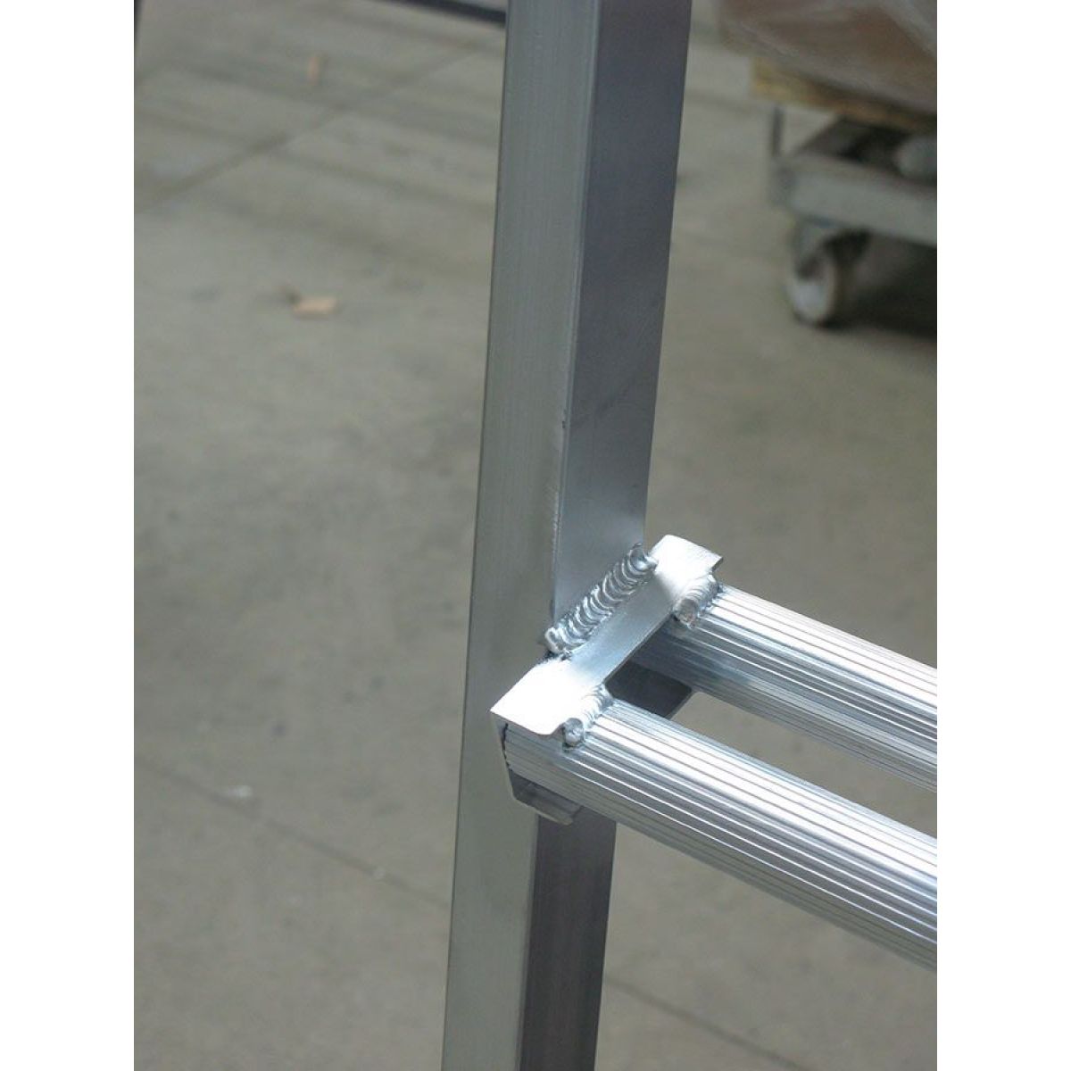 • Широкие ступени, выполненные из двух труб диаметром 25 мм., облегчают работу на лестнице и обеспечивают комфорт и безопасность