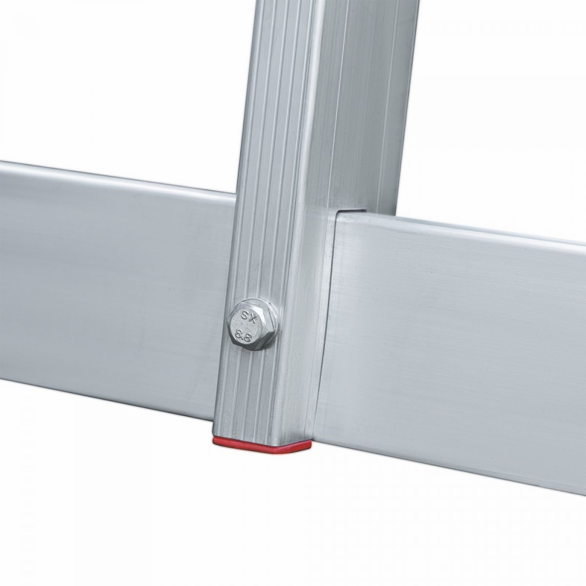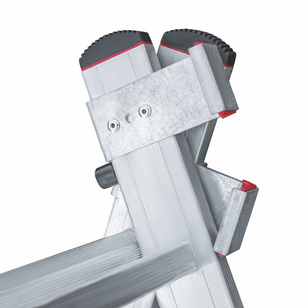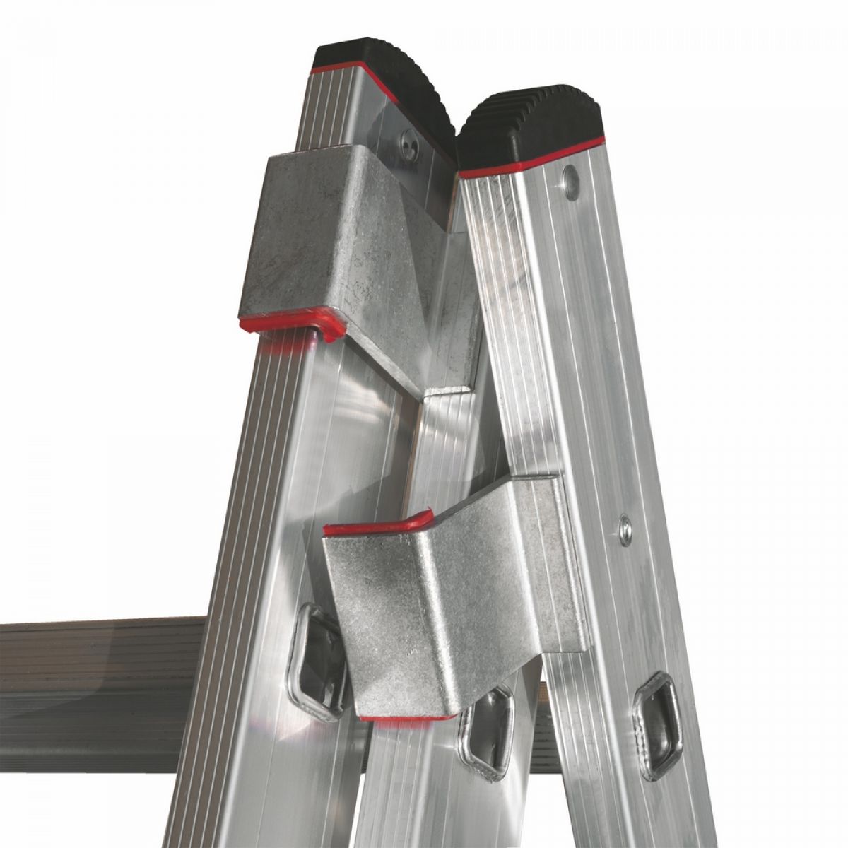 - Прочные страховочные стяжки из алюминия дополнительно предохраняют лестницу от самопроизвольного раскладывания.