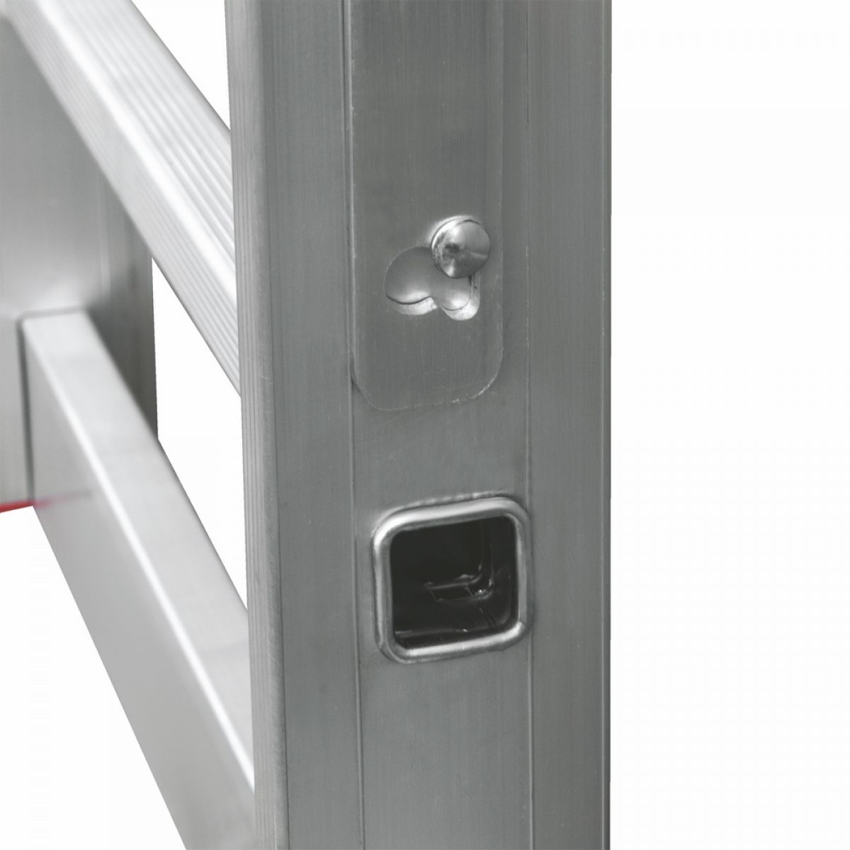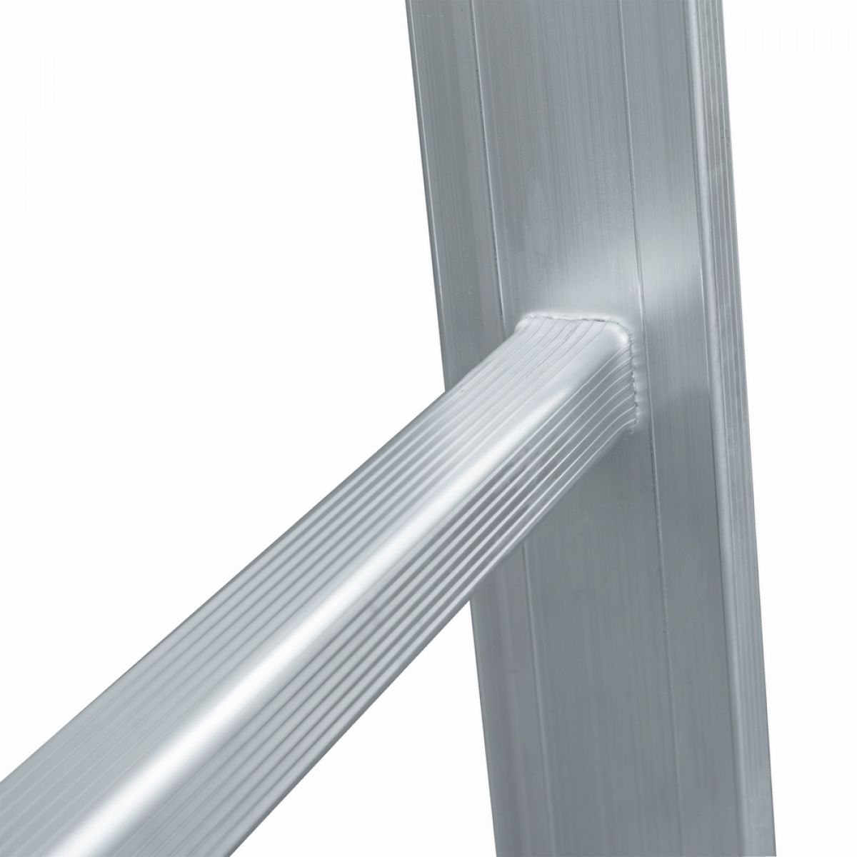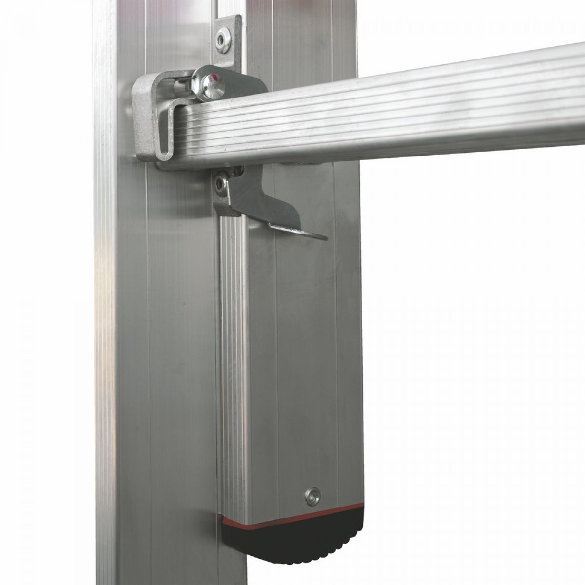 - Прочные страховочные стяжки из алюминия дополнительно предохраняют лестницу от самопроизвольного раскладывания.