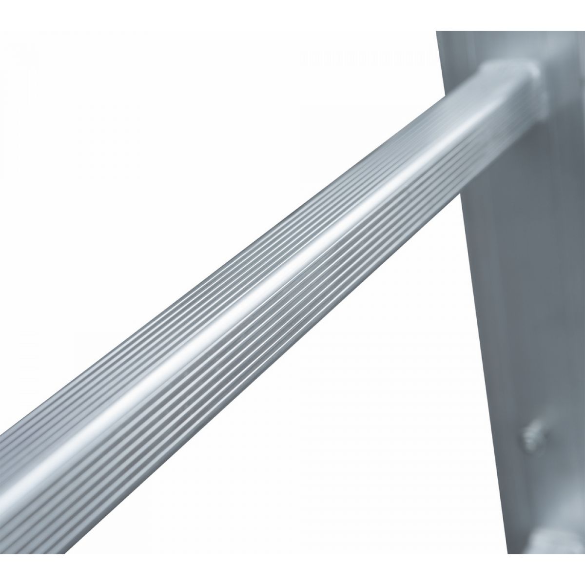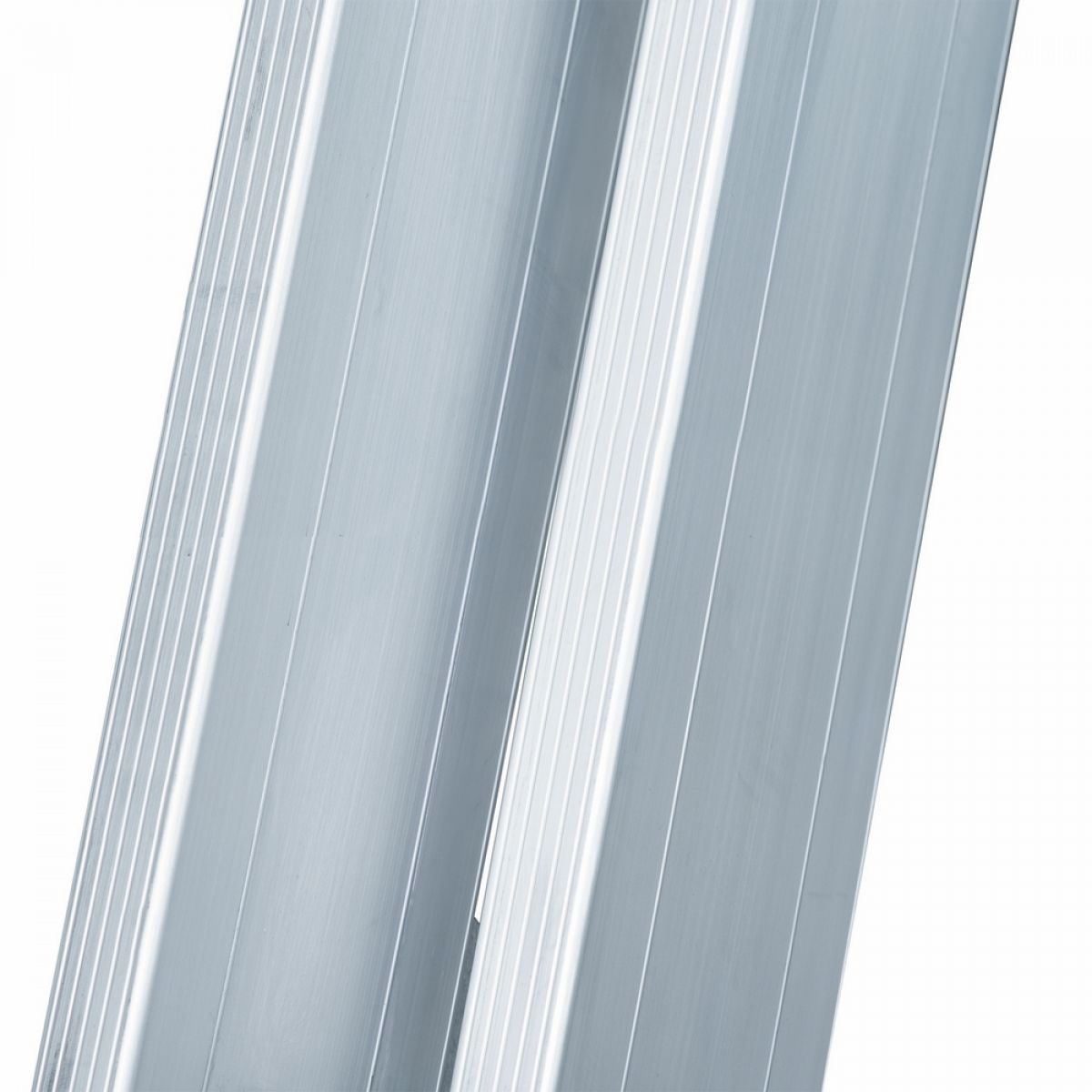 - Направляющие и ступени лестницы изготовлены из легированнго рифленого алюминиевого профиля. Направляющие имеют дополнительные ребра жесткости.