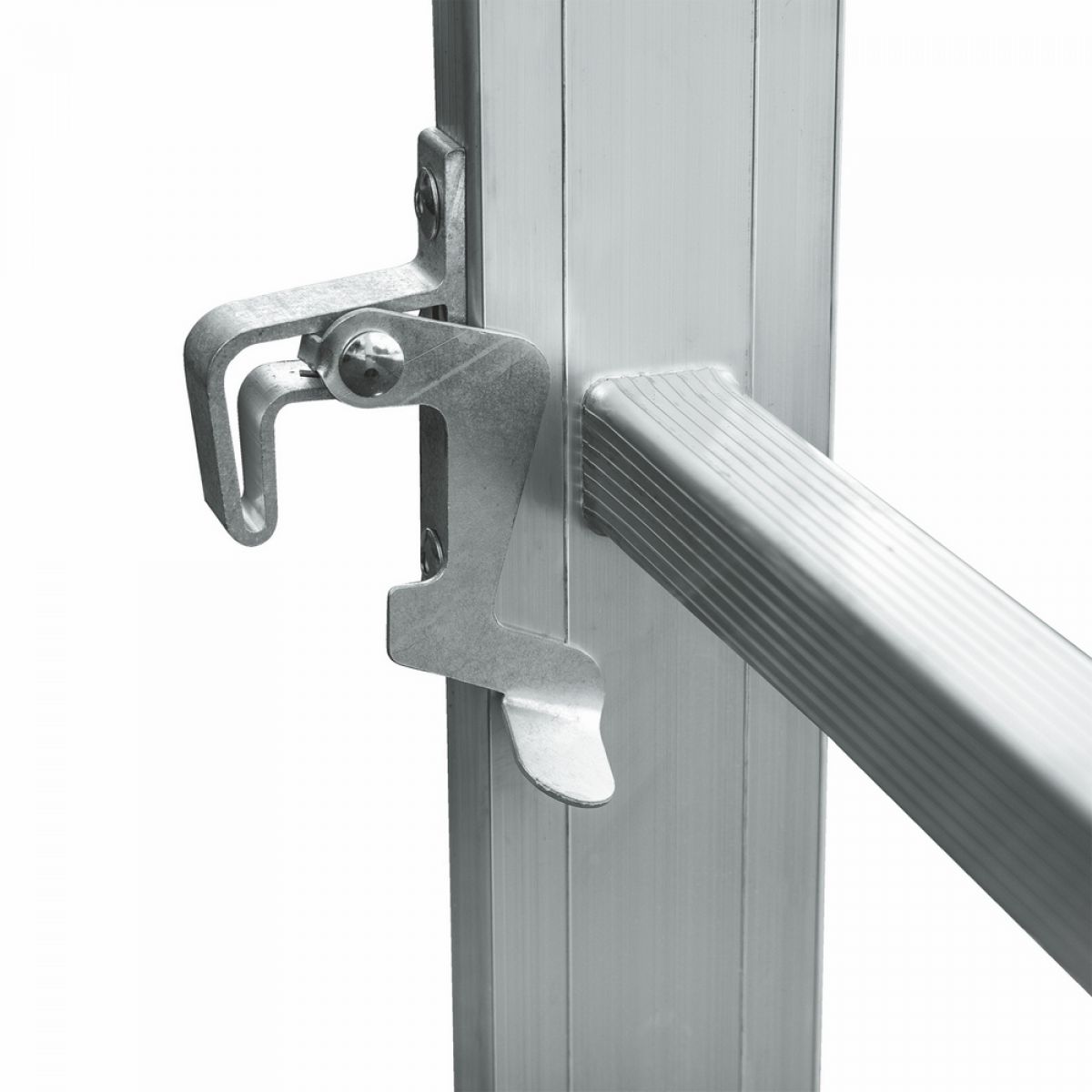 - Лестница снабжена самозахватывающими фиксирующими крюками, которые препятствуют самопроизвольному рассоединению секций.