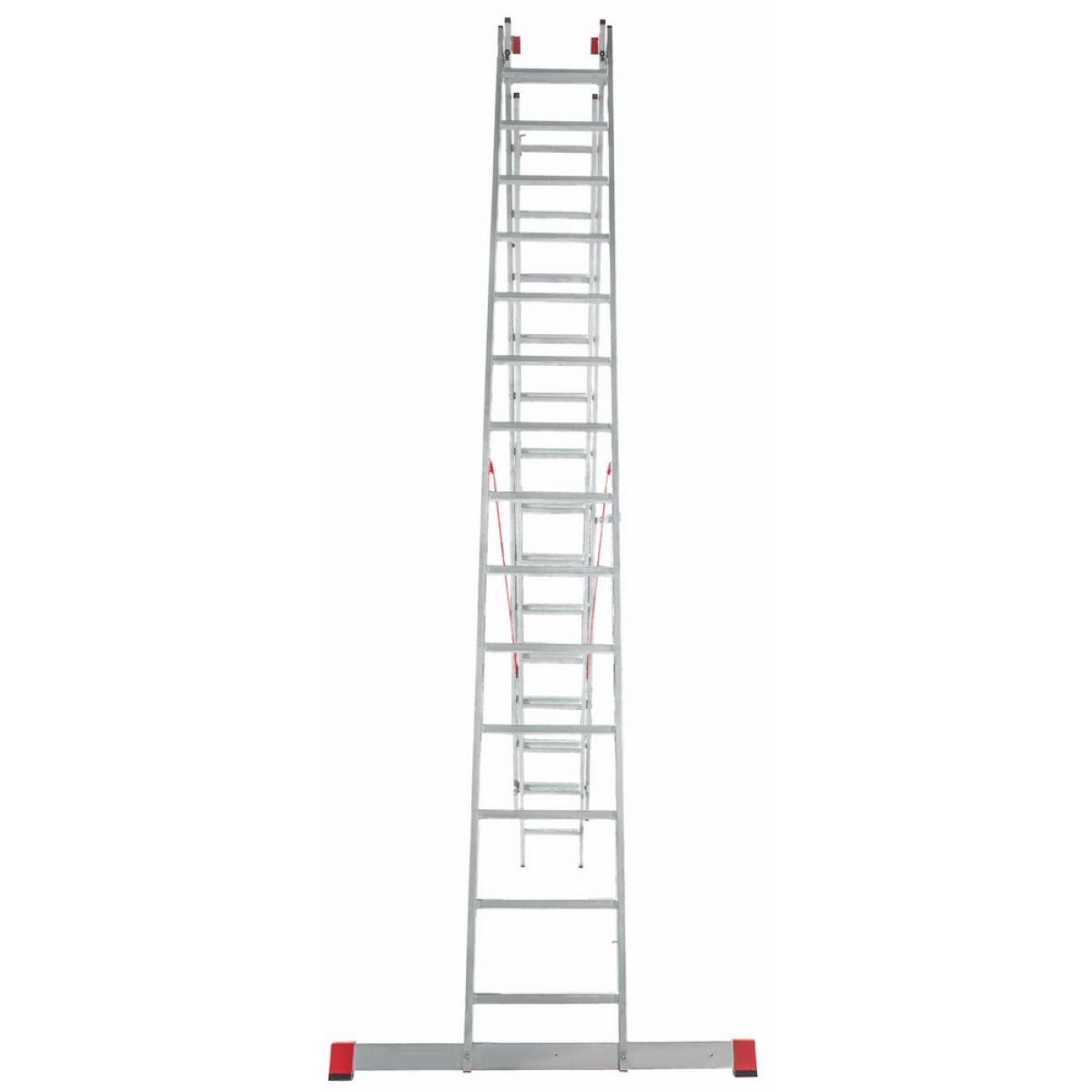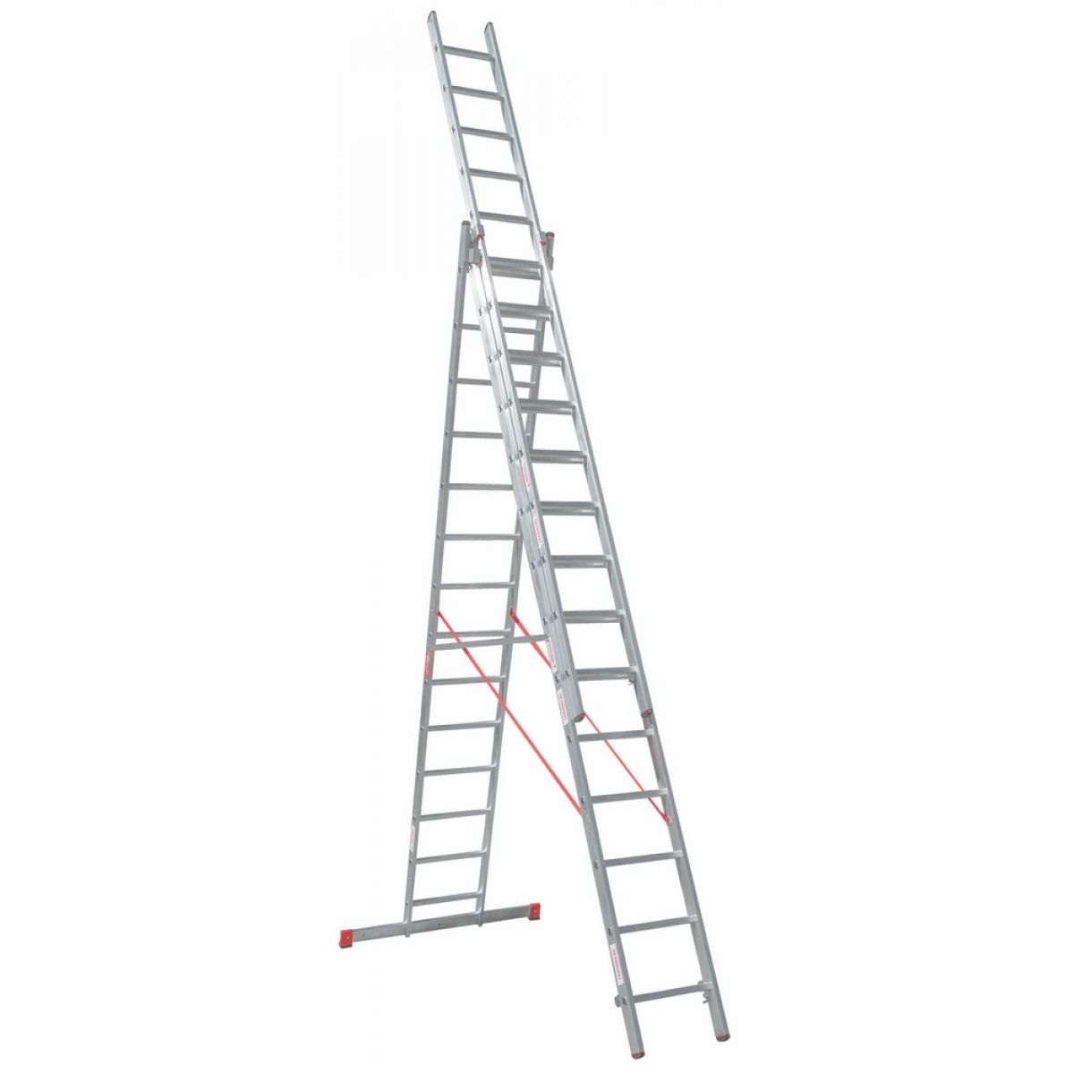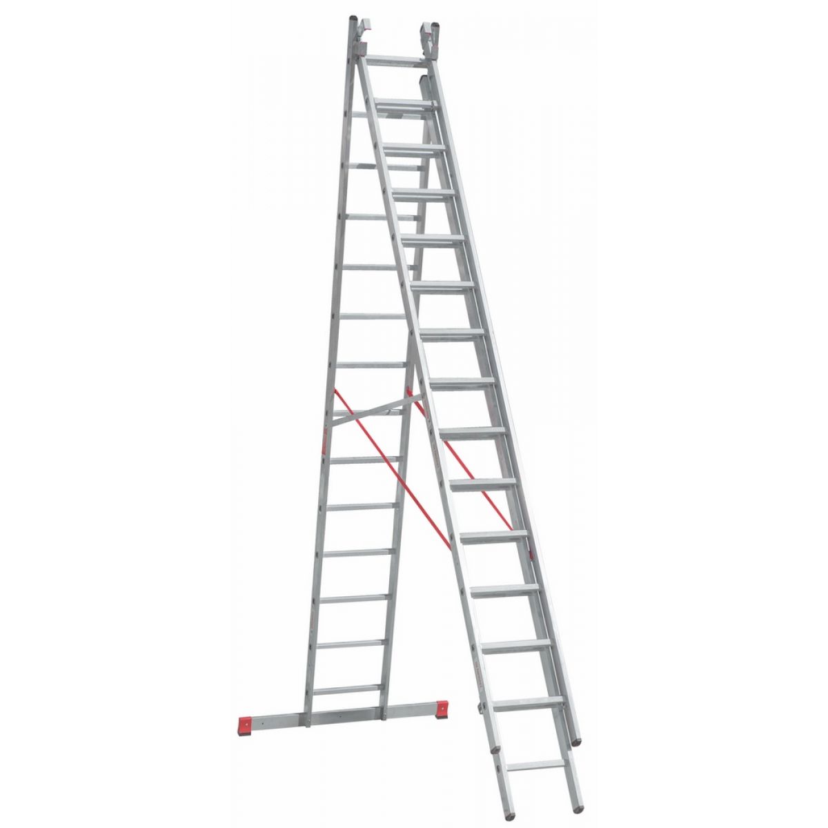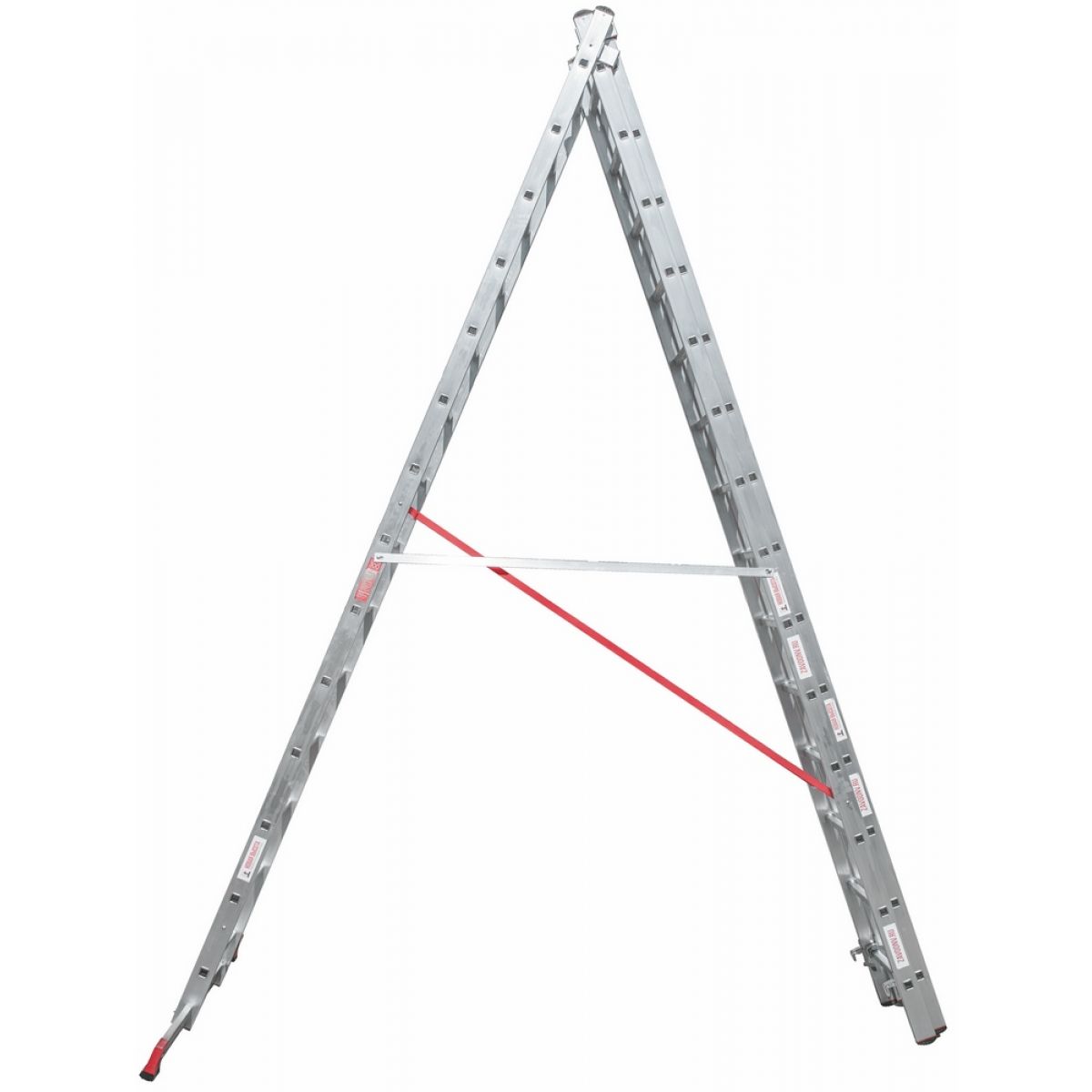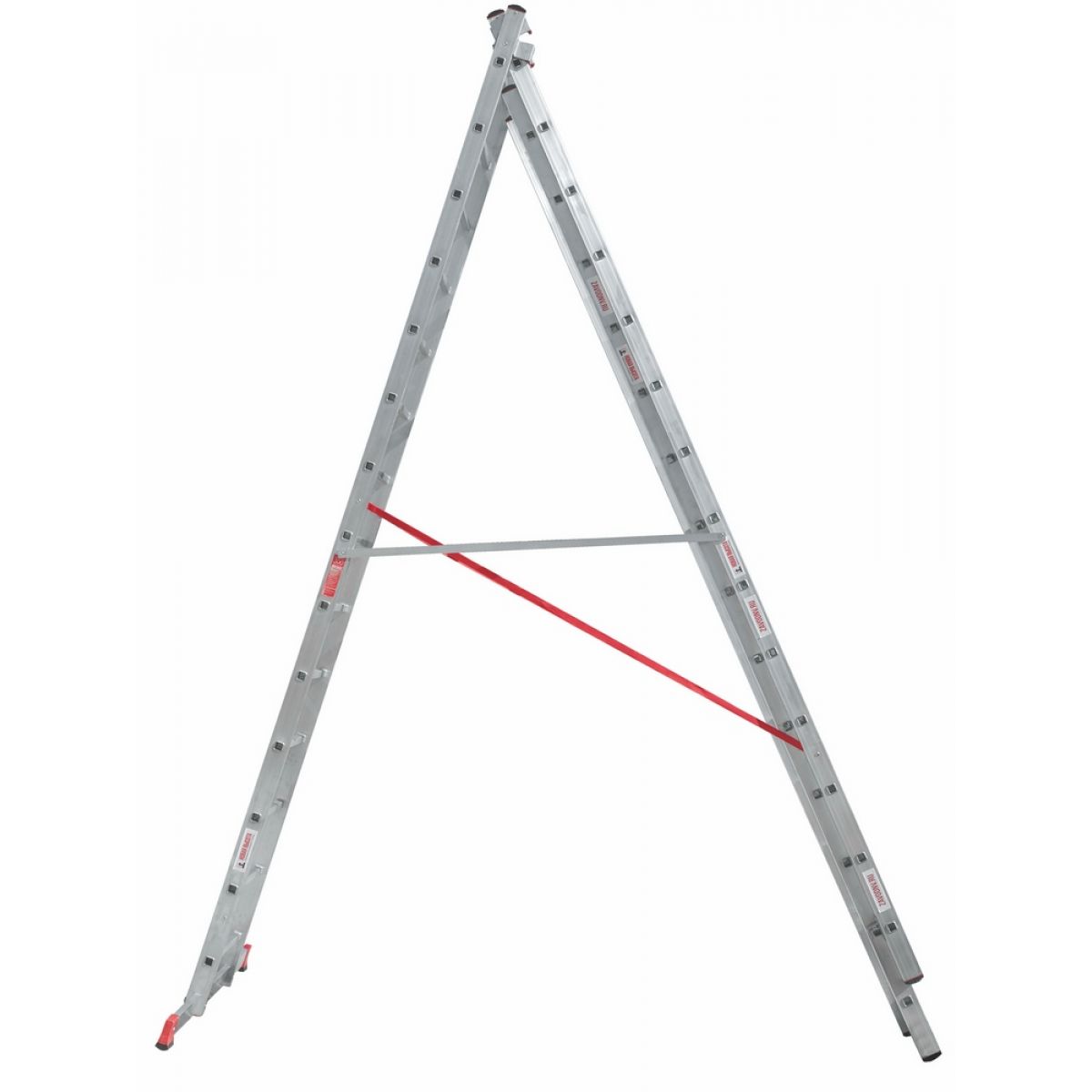 - Лестница укомплектована широкой поперечной траверсой с пластиковыми наконечниками, которая обеспечивает ее высокую устойчивость при использовании.