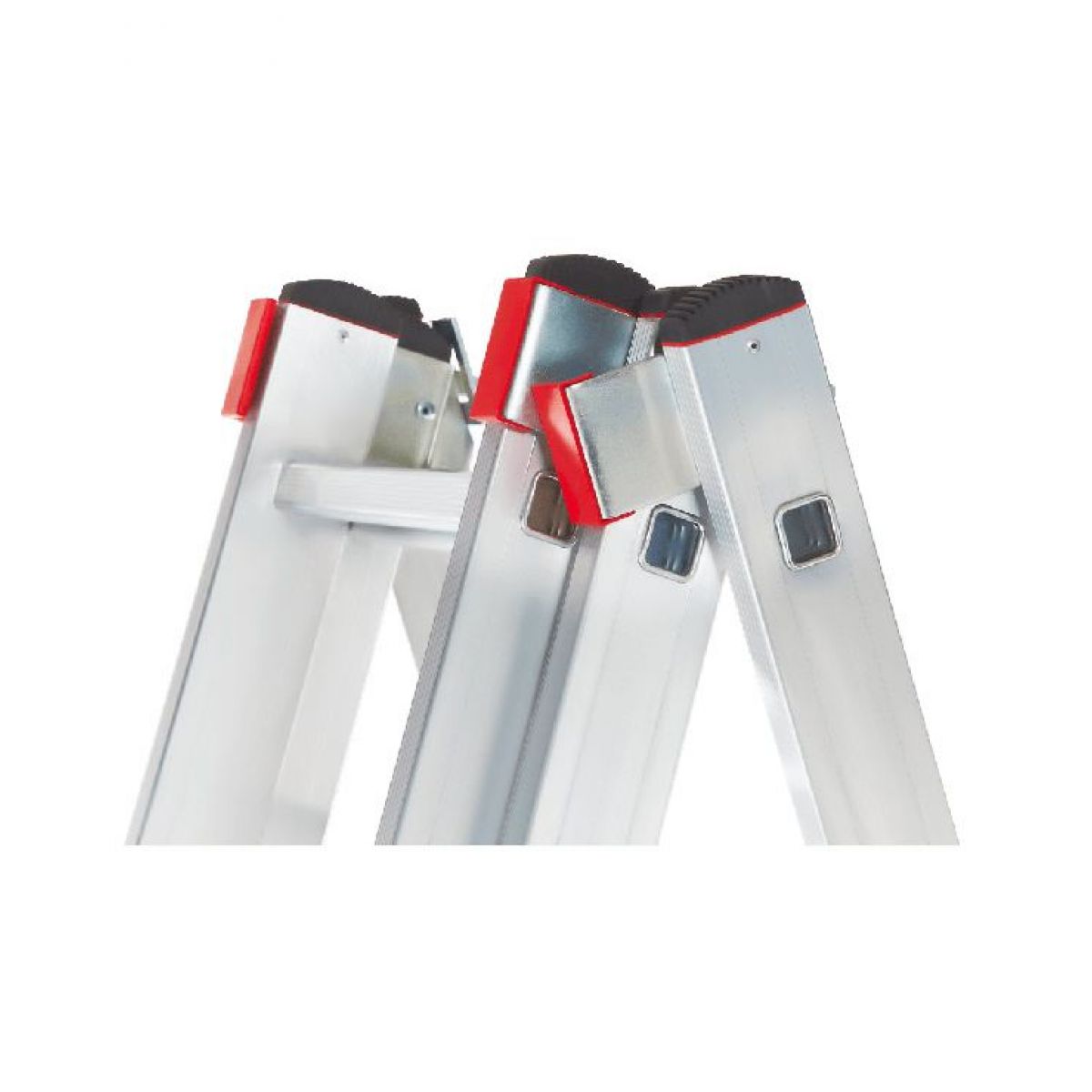 • Прочные страховочные стяжки из алюминия дополнительно предохраняют лестницу от самопроизвольного раскладывания.