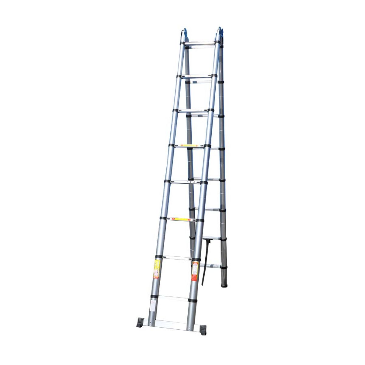 • Алюминиевая лестница используется как стремянка с двусторонним подъемом. Стальной шарнир фиксирует лестницу в двух положениях.