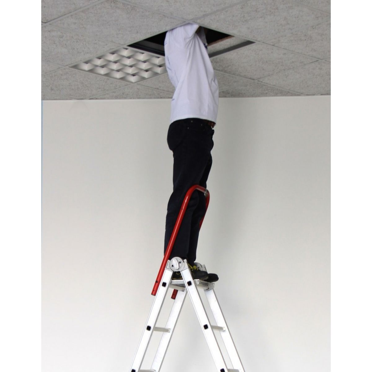 Телескопическая лестница SVELT SCALISSIMA ELITE 8+8 из экструдированного алюминия с ребрами жесткости увеличенного размера с телескопической надставкой и широким основанием. Оснащена новыми революционными пластинчатыми петлями из штампованного алюминия. Она полностью укомплектована и предназначена для интенсивного профессионального использования, можно использовать как приставную лестницу, стремянку. Можно использоватьна лестничных маршах или других поверхностяхс перепадом высот.