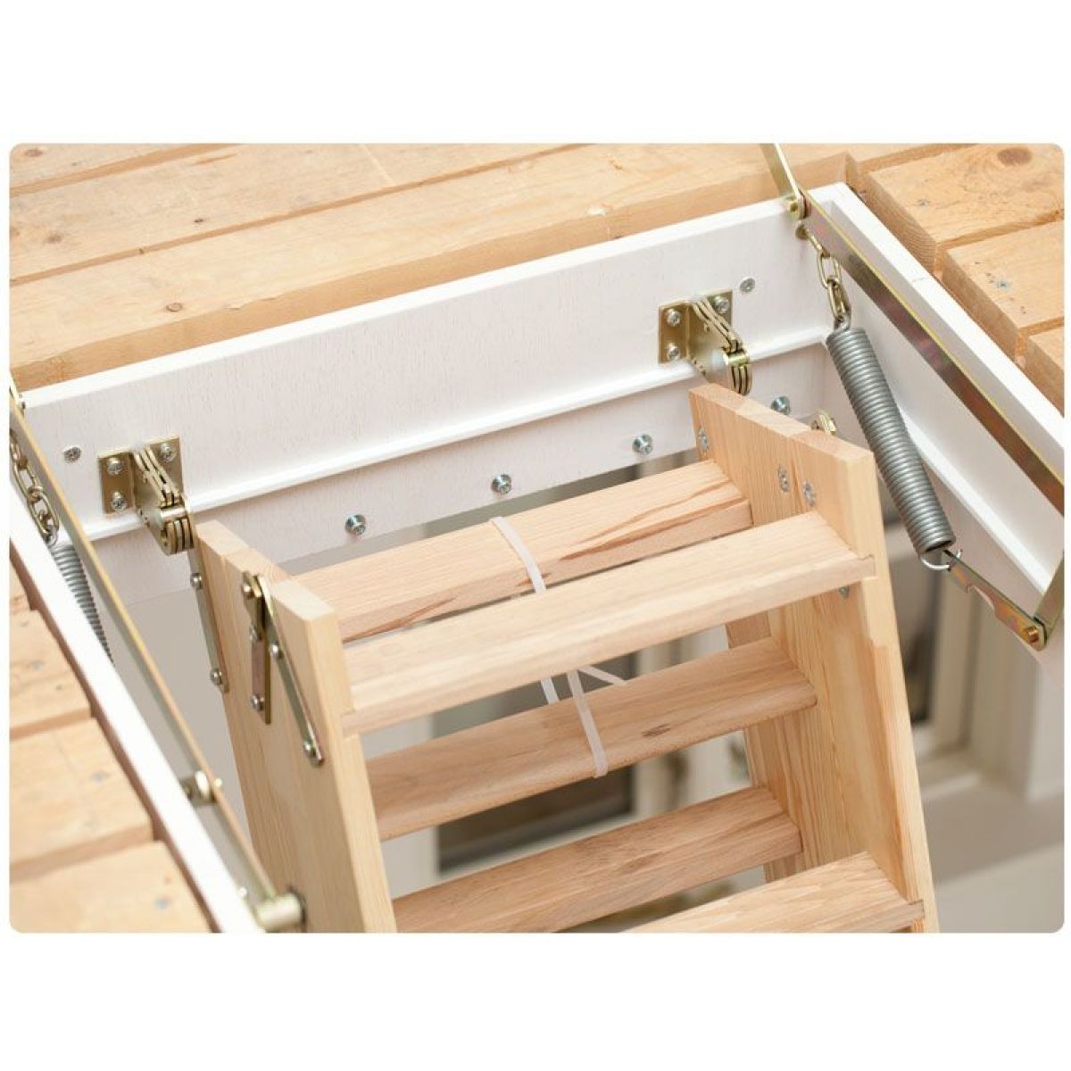Люк из сэндвич-панели и износостойкие уплотнители по всему периметру короба снизили теплопроводность лестницы до 0,49 Вт/квмС (у обычных лестниц - от 0,8 до 3,66 Вт/квмС).