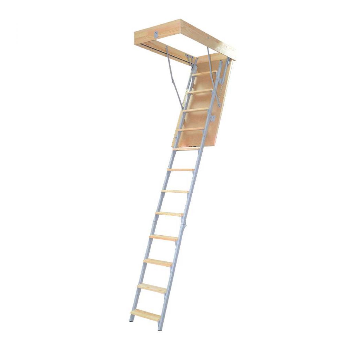 Комбинированная чердачная лестница ЧЛ-17 60x120 удобная и функциональная складная конструкция для подъема на чердак или мансарду. Применяется в условиях ограниченного пространства и невозможности поставить стационарную лестничную конструкцию. Изготовление деревянных элементов производится из сосны. В сложенном виде позволяет экономить пространство. Лестница состоит из трех секций, легко убирается в потолок. Проста в установке. Имеет утепленную крышку люка белого цвета.
