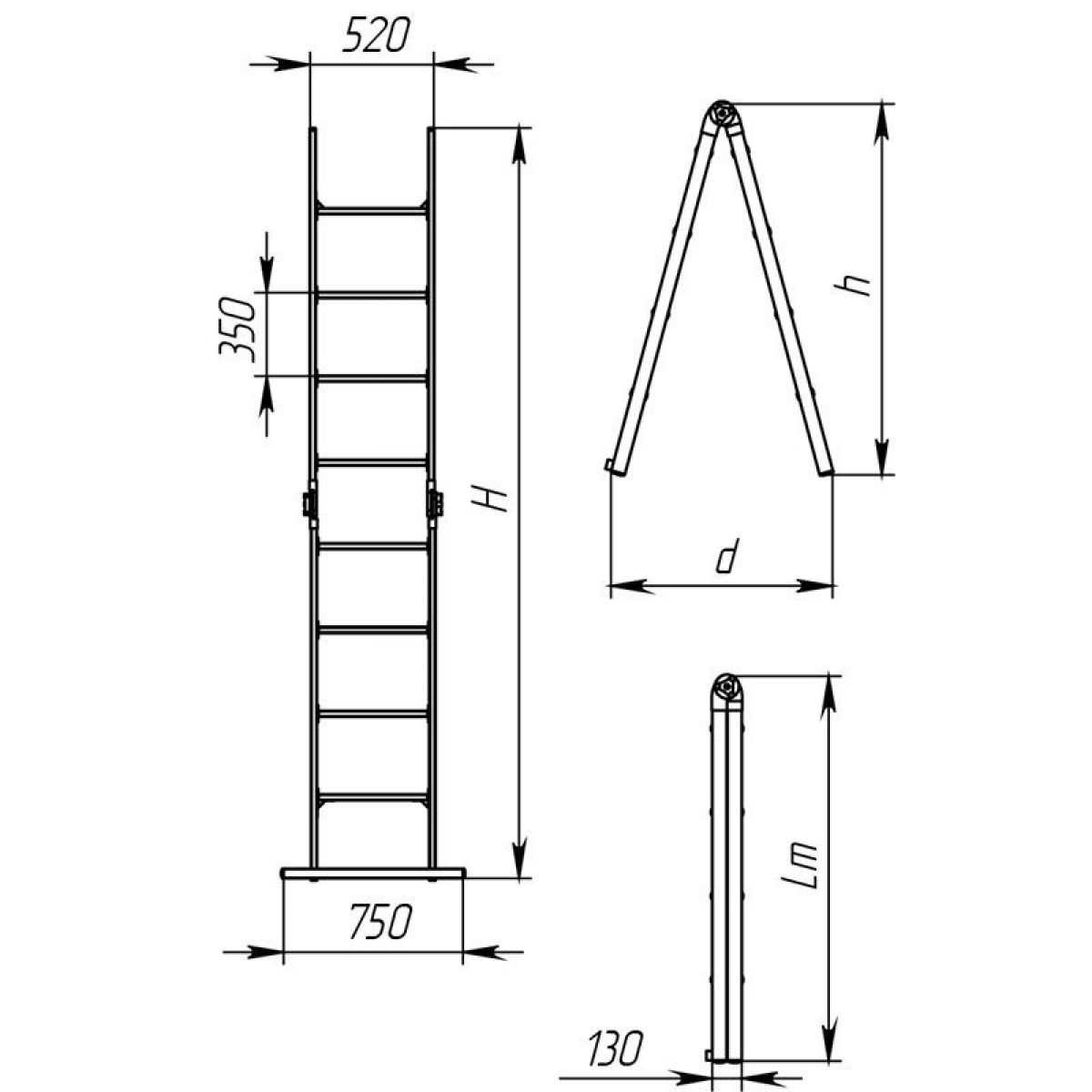 • Ширина верхней секции лестницы - 520 мм. , нижней- 750 мм.