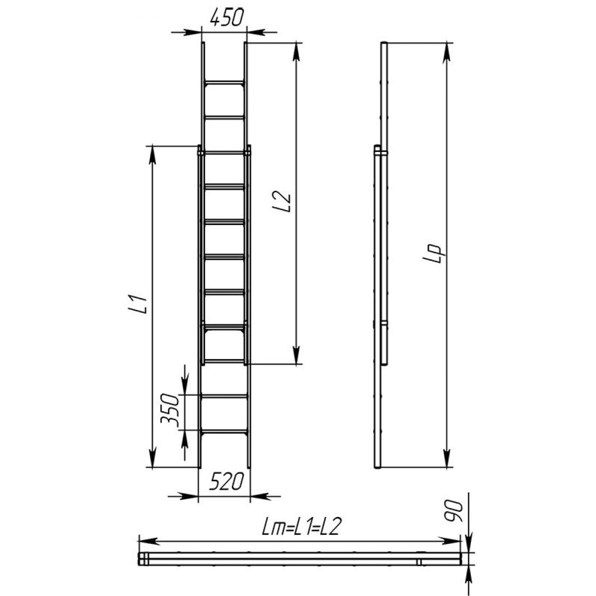 - Ширина лестницы в верхней секции- 450 мм. , нижней секции - 520 мм.