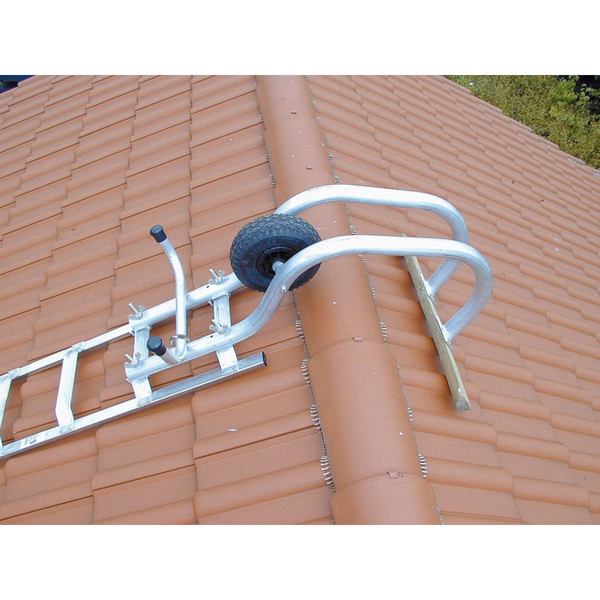 Перекидной крюк Krause надежно фиксируется на крышной лестнице. При этом нет необходимости использовать навесные крюки, которые устанавливаются стационарно на крыше. Перемещение по крыше осуществляется с помощью пневматического ролика диаметром 260 мм. Высока конструкция дуги не повреждает черепицу.