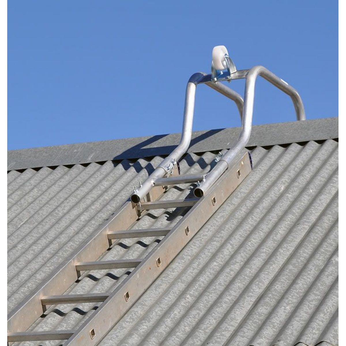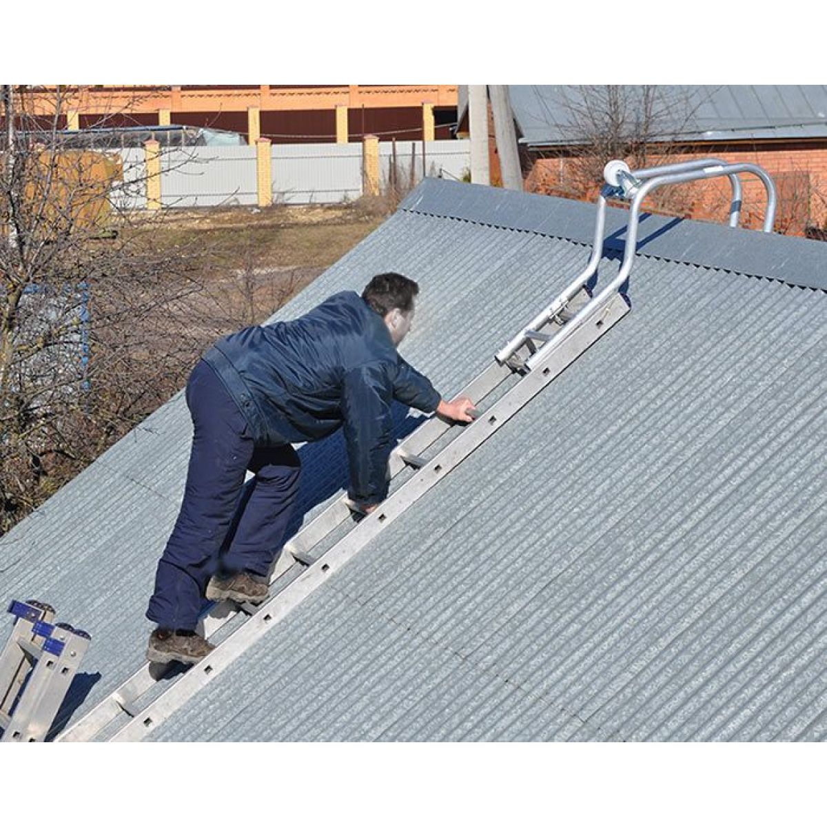 Перекидная передвижная скоба для временного крепления лестницы на крыше.