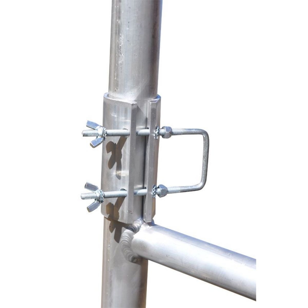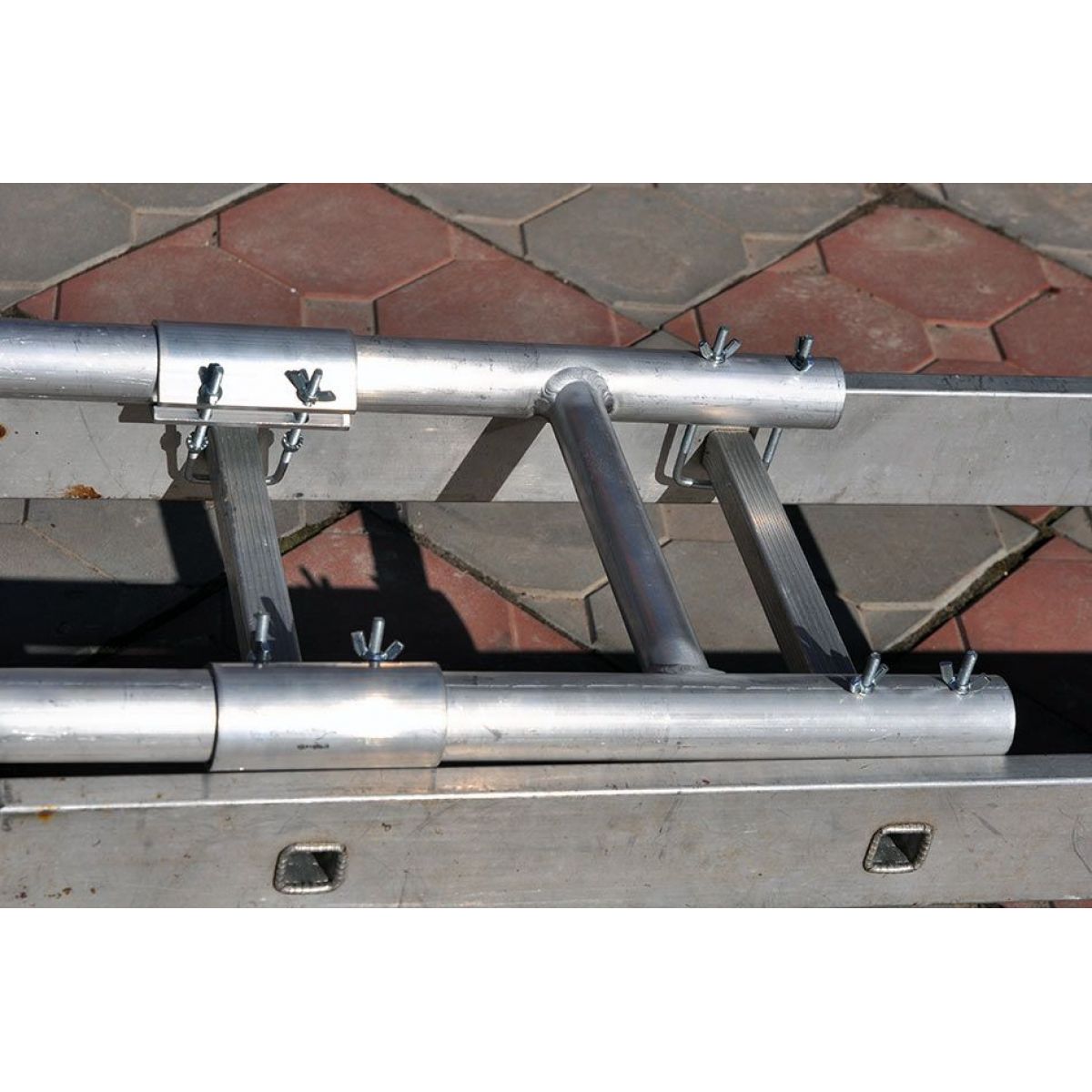 - Может использоваться с любыми односекционными лестницами, благодаря универсальному механиму крепления скобы. Минимальная ширина лестницы - 30 см. Расстояние между ступенями от 12 см и более, высота профиля от 6 см до 12 см.