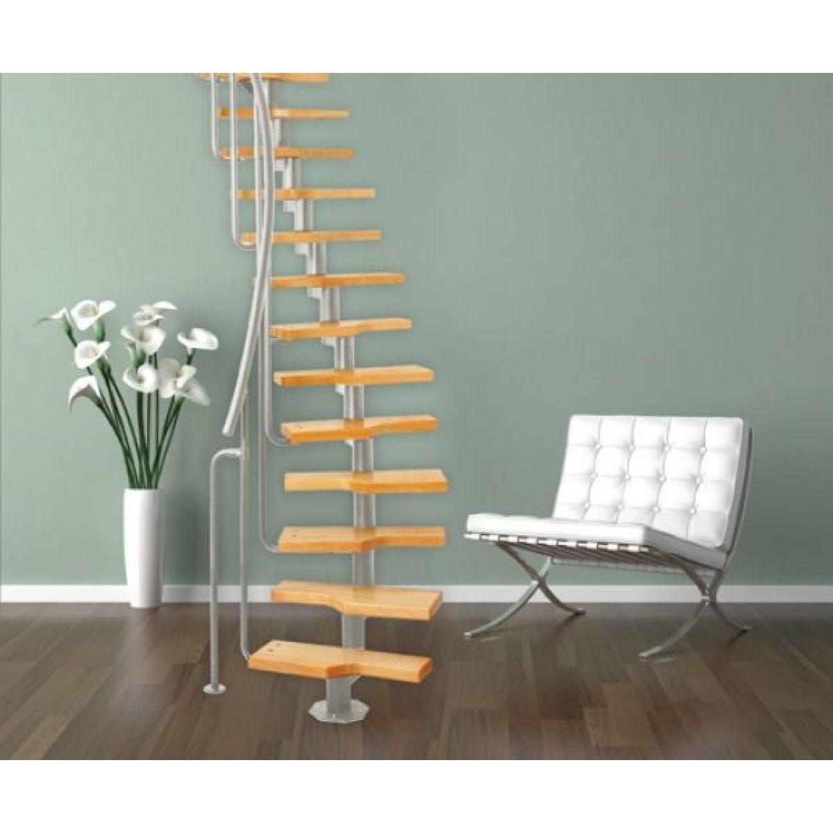 Компактная, требующая минимального пространства, модульная лестница. Оптимальное решение для установки на мансарду. Возможен поворот - до полукруга. На сборку и установку лестницы потребуется несколько часов.