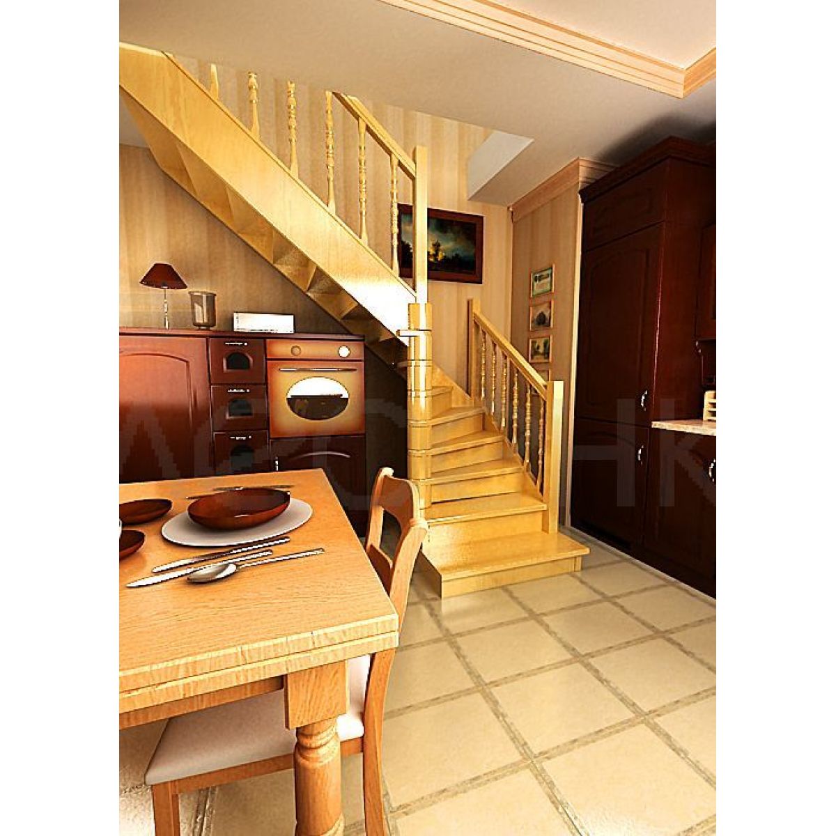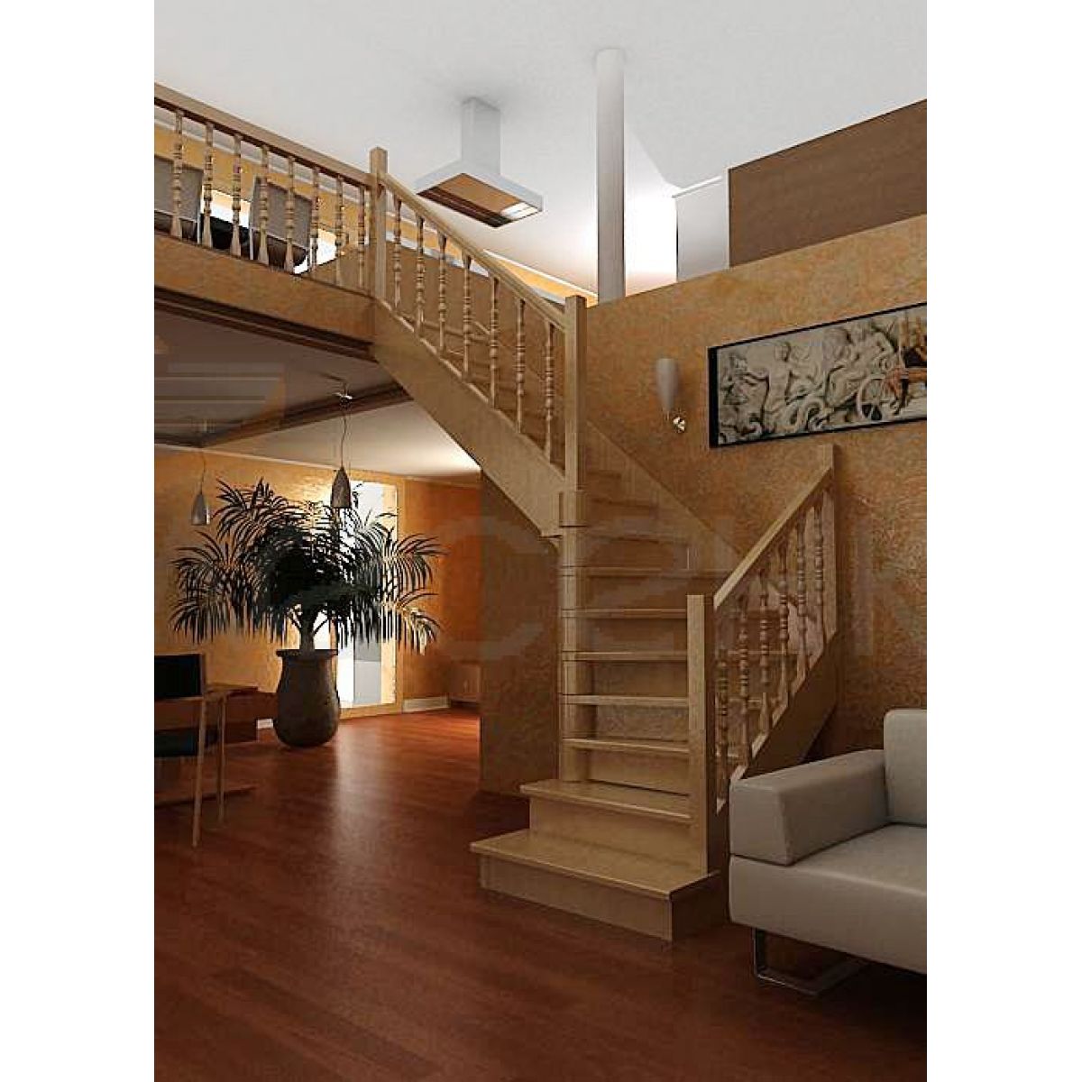 Деревянная лестница поставляется в разобранном виде в одной упаковке и собирается на объекте монтажа по указаниям приведёным в паспорте на лестницу.