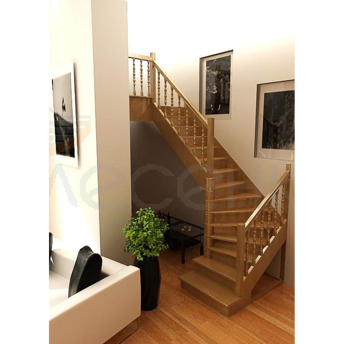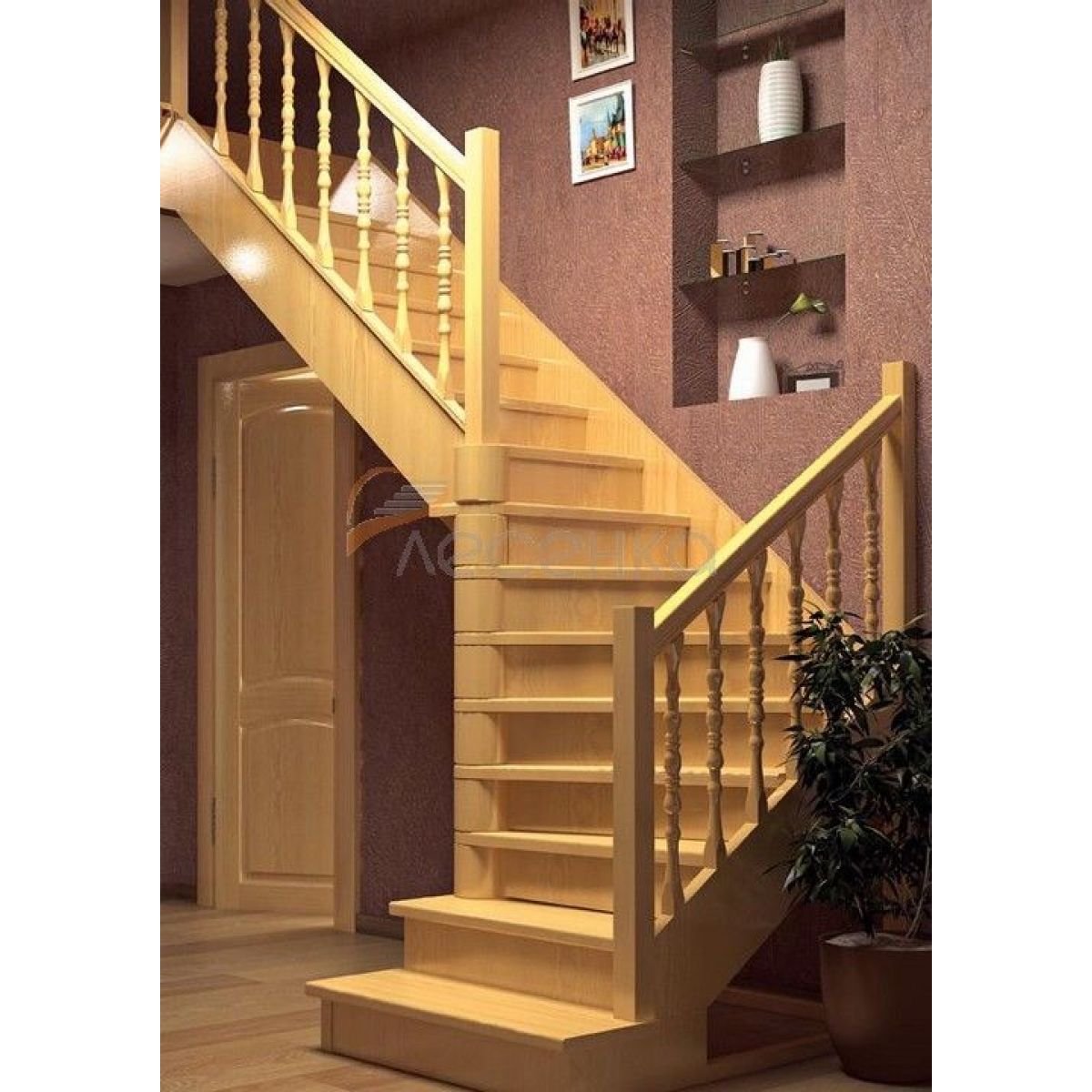 Деревянная лестница поставляется в разобранном виде в одной упаковке и собирается на объекте монтажа по указаниям приведёным в паспорте на лестницу.