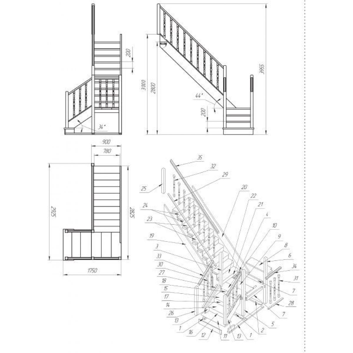 | габариты лестницы в плане | 2825х1730x3035 |