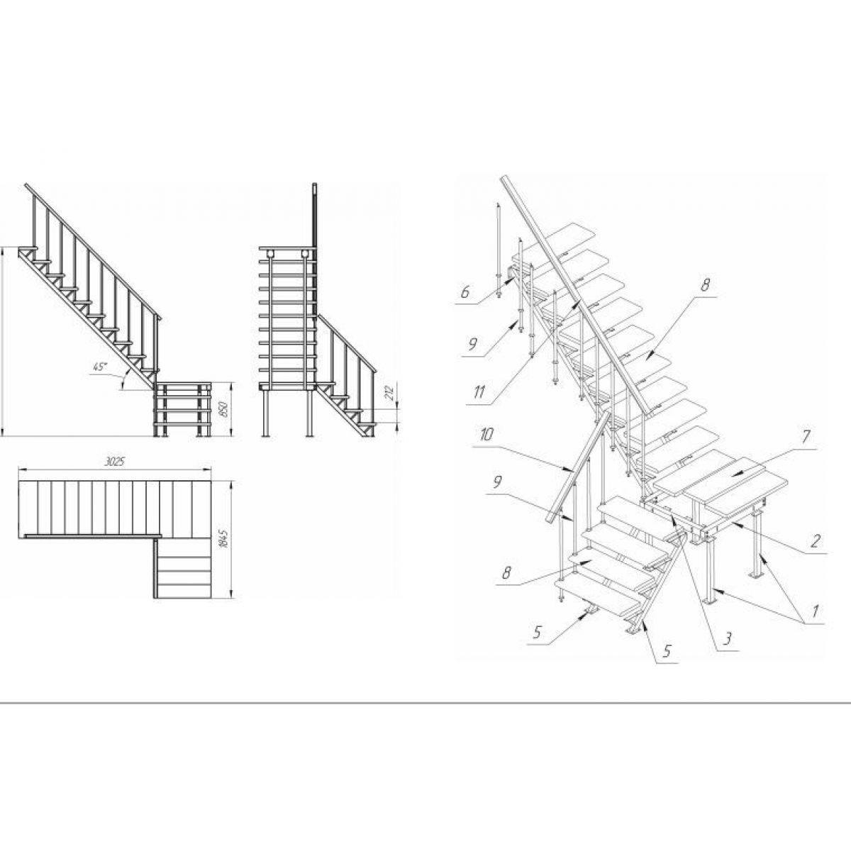 | габаритные размеры лестницы в плане | 2805х1845x3820 мм 3020х1845x4020 мм |