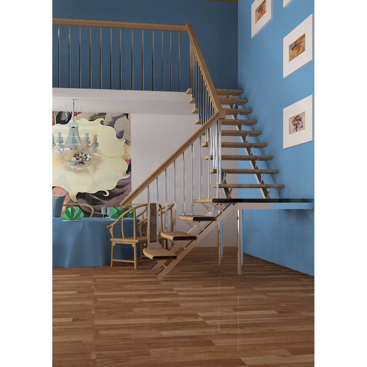 Деревянная межэтажная лестница ЛЕС-05 универсальная (поворот 90 градусов)