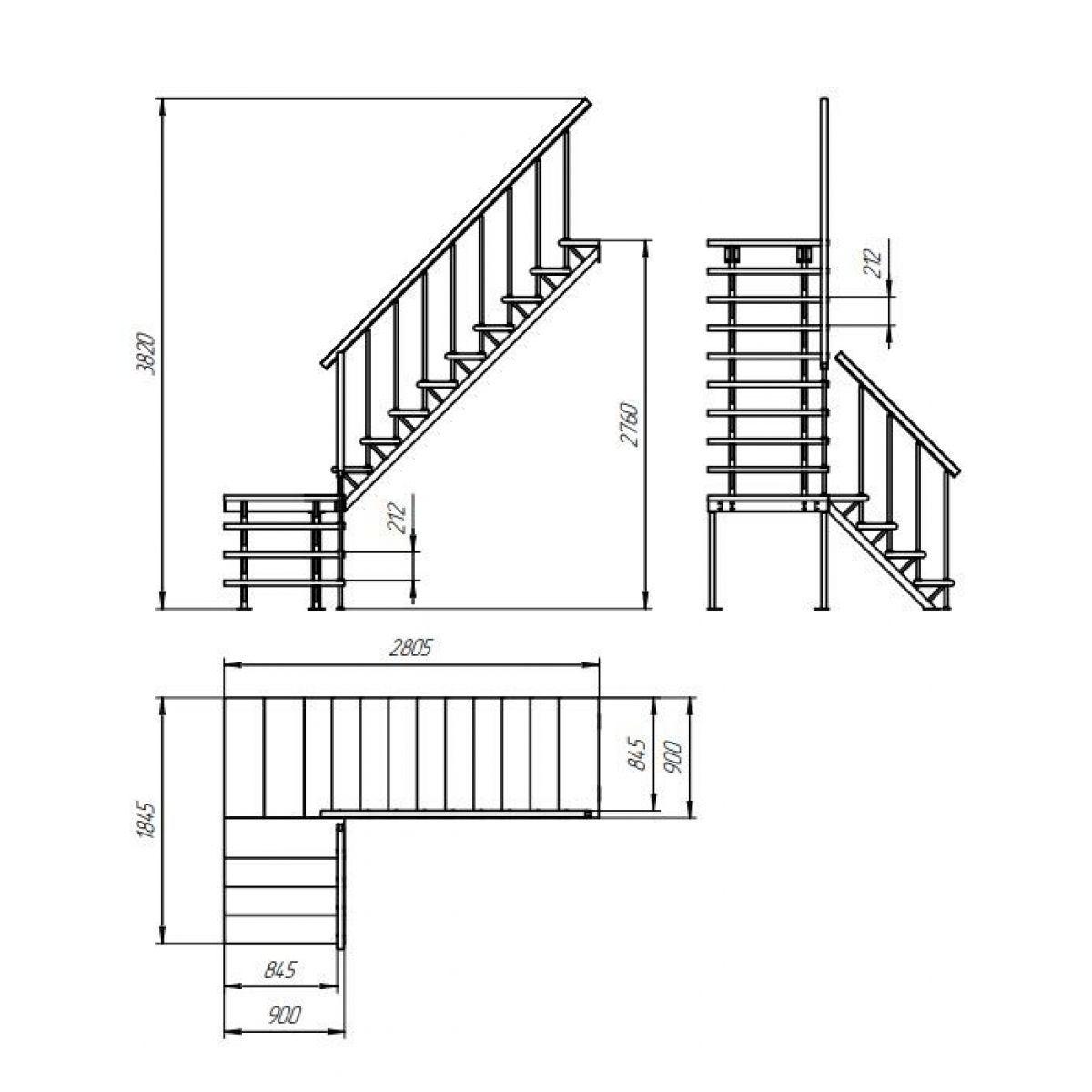 габаритные размеры лестницы в плане 2805х1845x3820 мм