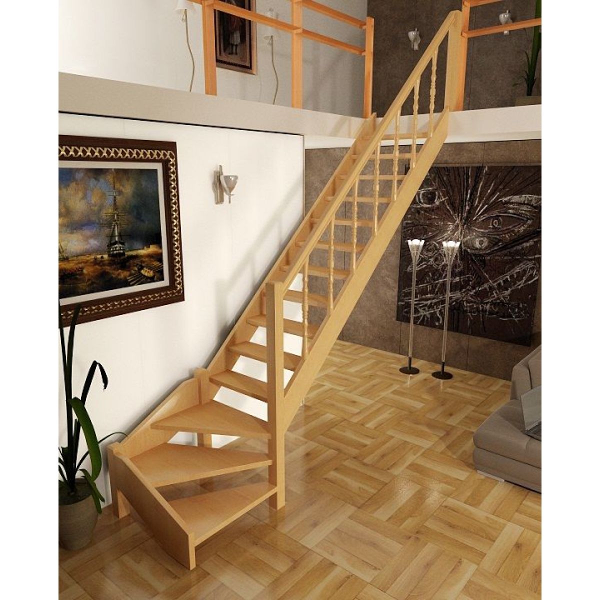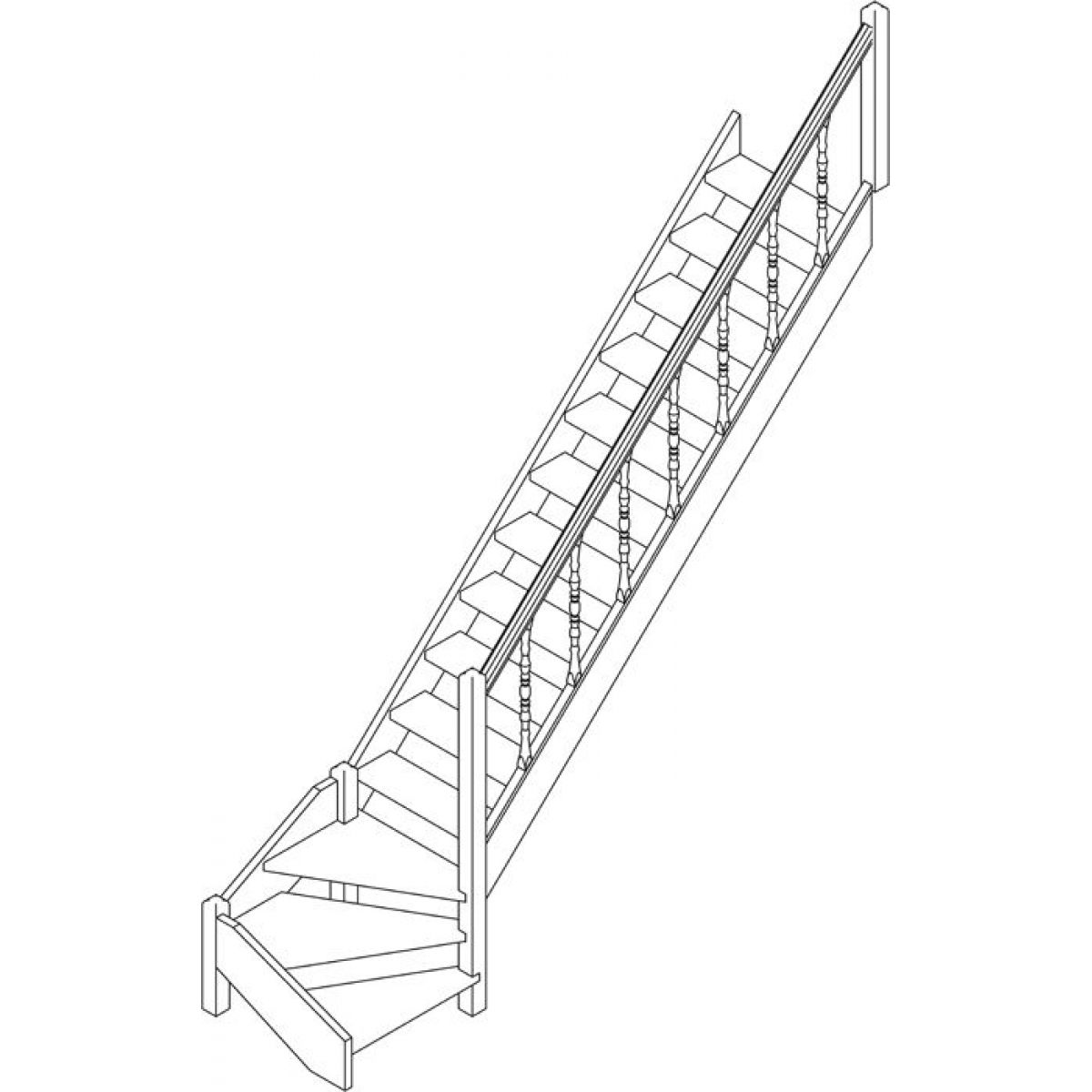 Деревянная межэтажная лестница ЛЕС-07 левозаходная (поворот 90 градусов)