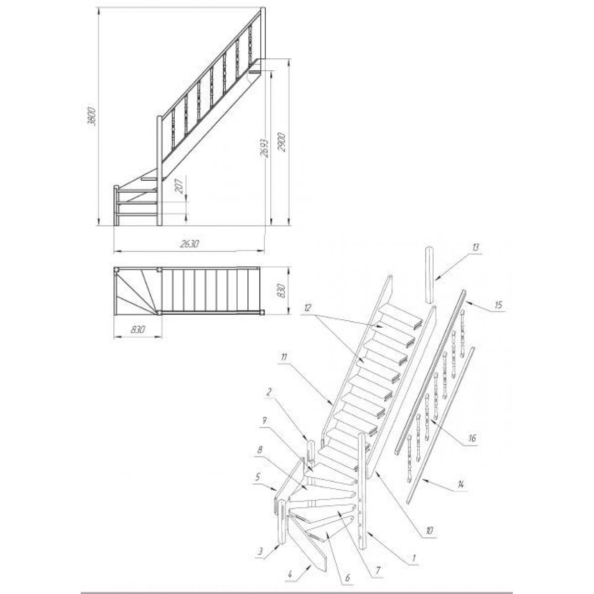 габариты лестницы в плане 2630 х 830 х 3800 мм