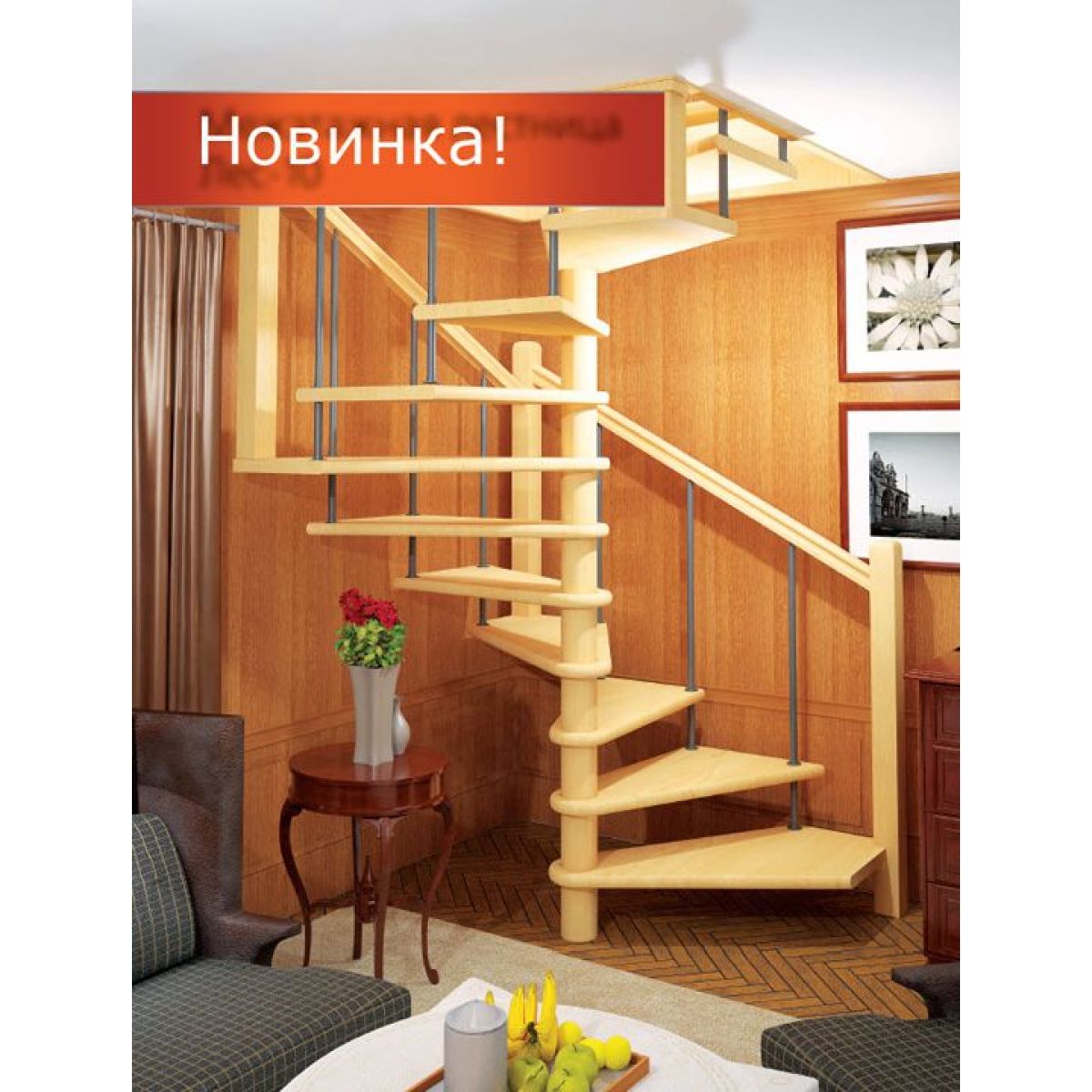 Деревянная межэтажная лестница ЛЕС-10 левозаходная 360 градусов