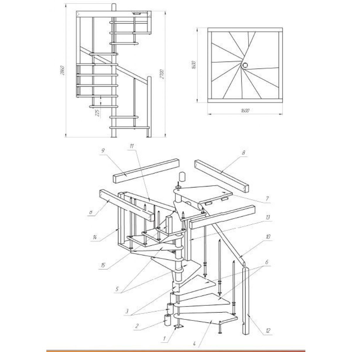 габариты лестницы в плане 1600 x 1600 мм