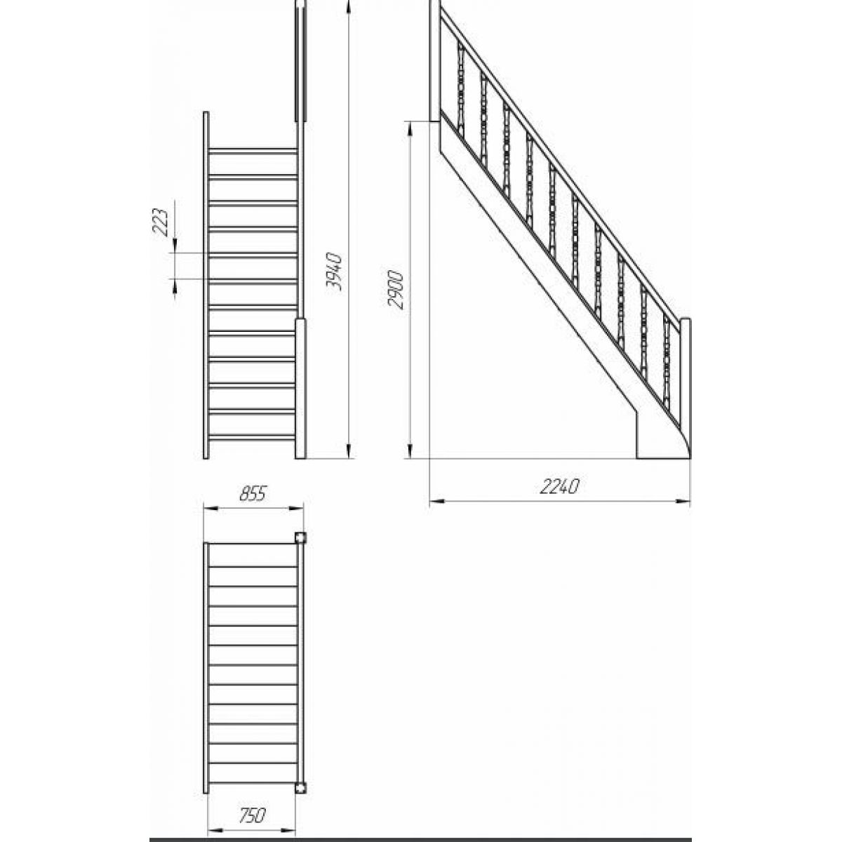 габариты лестницы в плане 2230х875x3940 мм