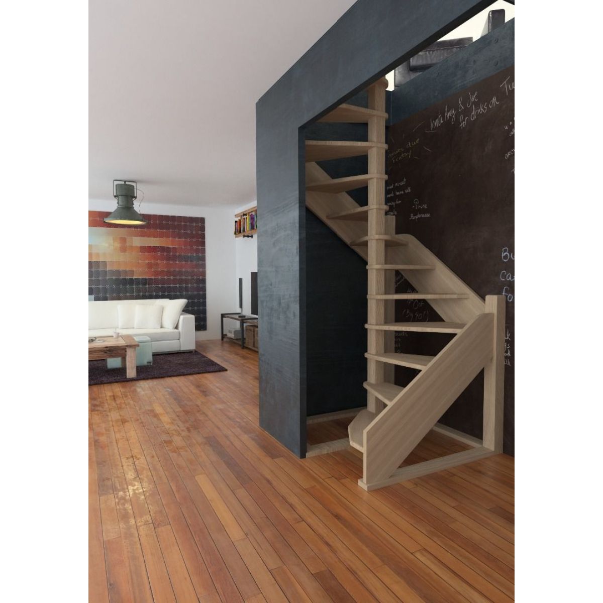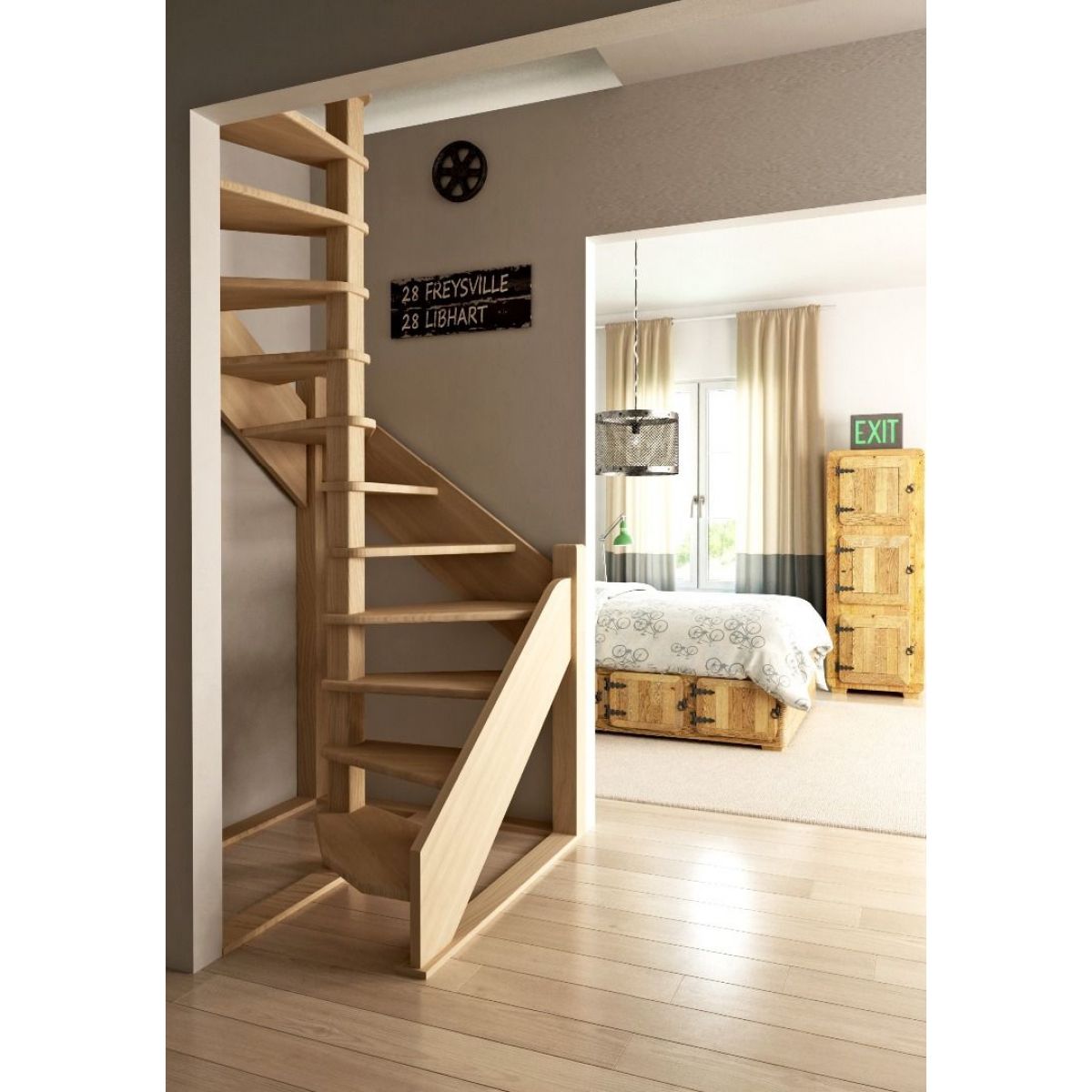 Деревянная лестница поставляется в разобранном виде в двух упаковках и собирается на объекте монтажа по указаниям приведёным в паспорте на лестницу.