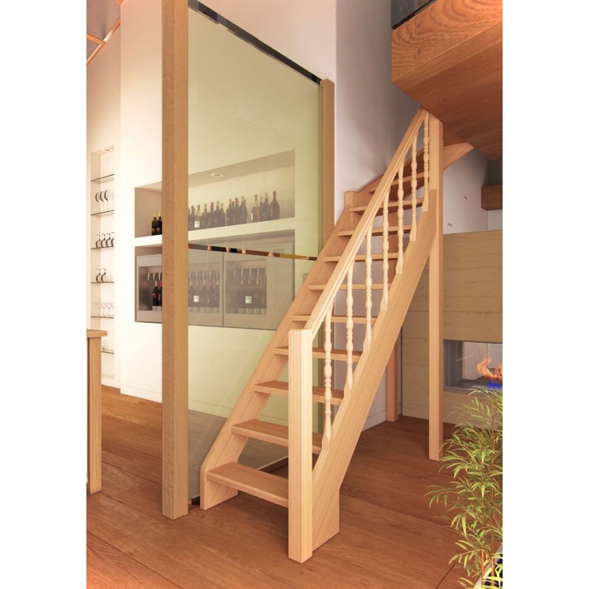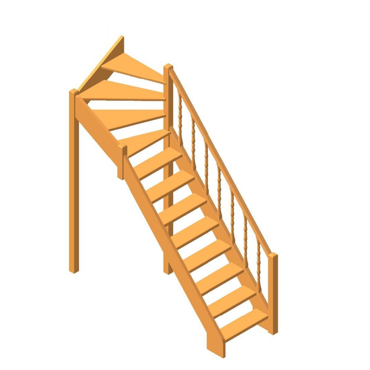 Деревянная лестница поставляется в разобранном виде в одной упаковке и собирается на объекте монтажа по указаниям приведённым в паспорте на лестницу.