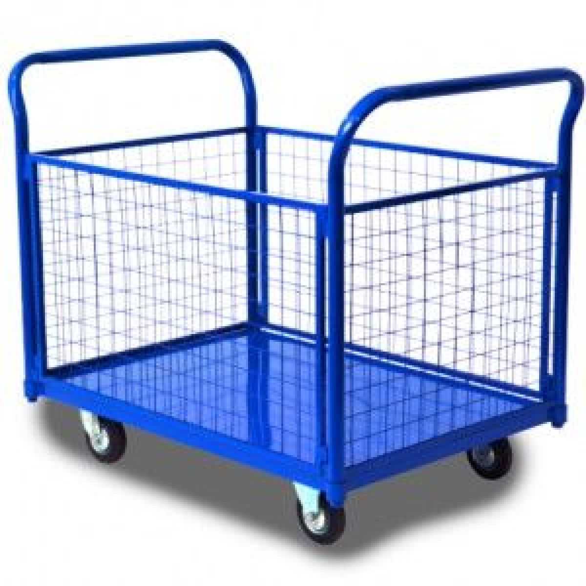 Тележка платформенная металлическая с сетчатыми бортами (ТПС) предназначена для перевозки мелкогабаритных товаров и грузов. Высокие борта и наличие двух ручек делают эту модель максимально удобной и более мобильной в эксплуатации. Платформой служит металлический настил. Каркас платформы изготавливается из профильной трубы. Борта изготовлены из профильной трубы, заполнение сетка с ячейкой 50х50 мм. Борта съемные и снабжены подпружиненным механизмом фиксации, который позволяет быстро и без применения, какого-либо инструмента производить снятие и установку. Площадки для крепления колес унифицированы под два межосевых размера крепления колес. Покраска изделия – порошковая, высокотемпературная.