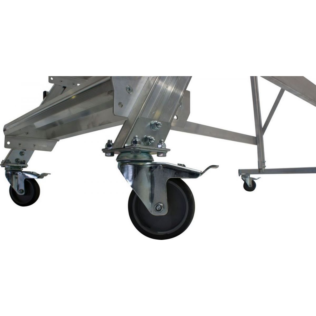 - 4 поворотных, оборудованных тормозами ролика с прорезиненным покрытием обеспечивают мягкость и плавность хода при перемещении