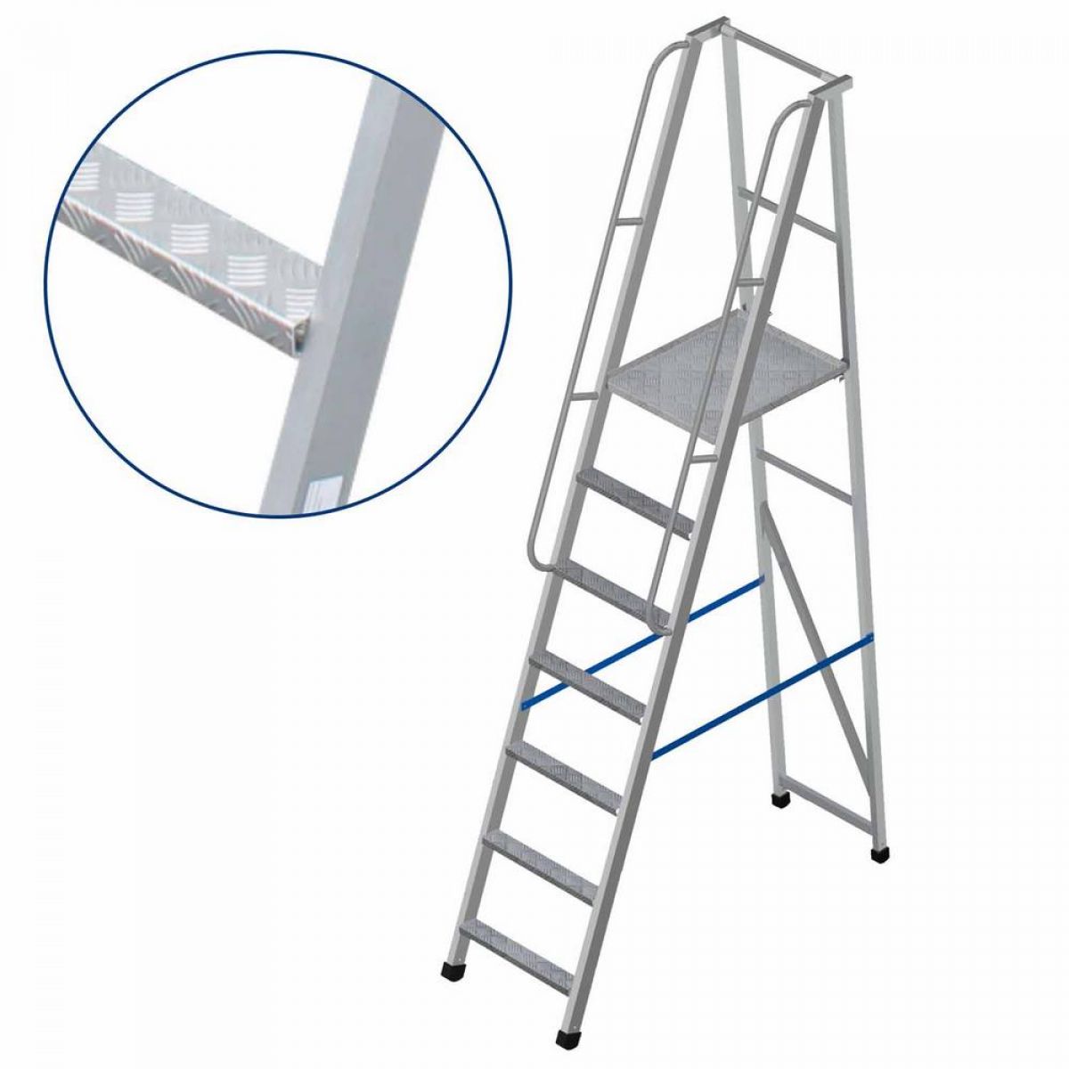 Лестница-платформа Мегал ЛПФВА-6 Н=1,0 с широкими ступенями алюминиевая