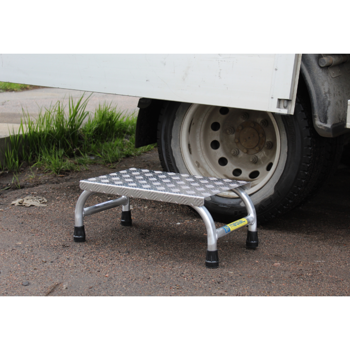 - Ступени шириной 240 мм из рифленого алюминиевого листа для безопасного подъема и удобства в работе.
