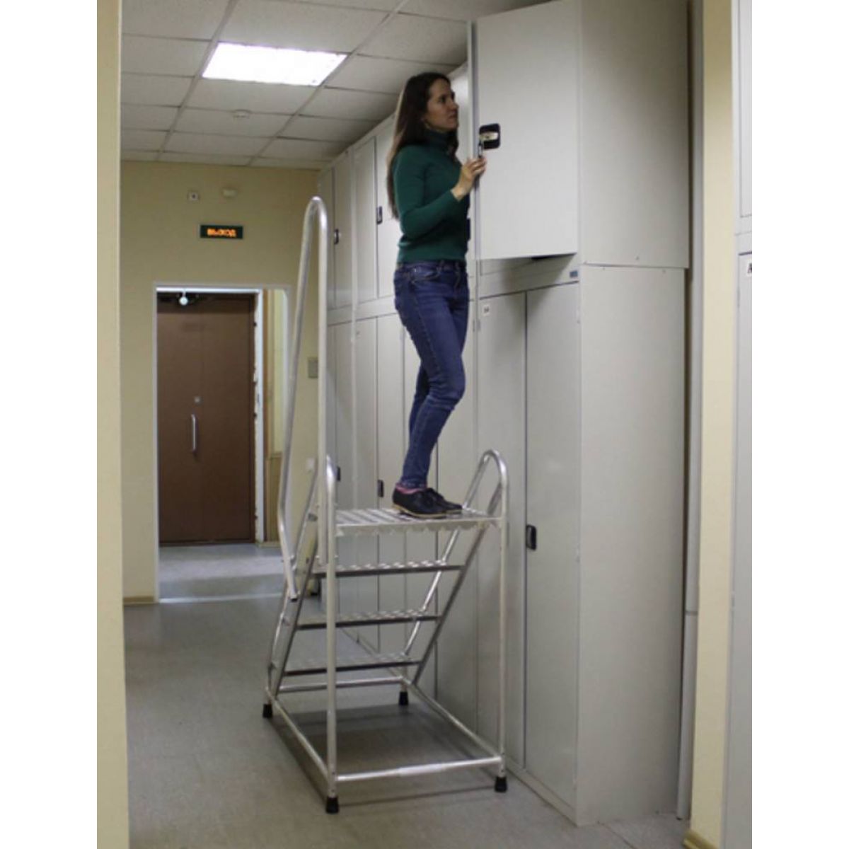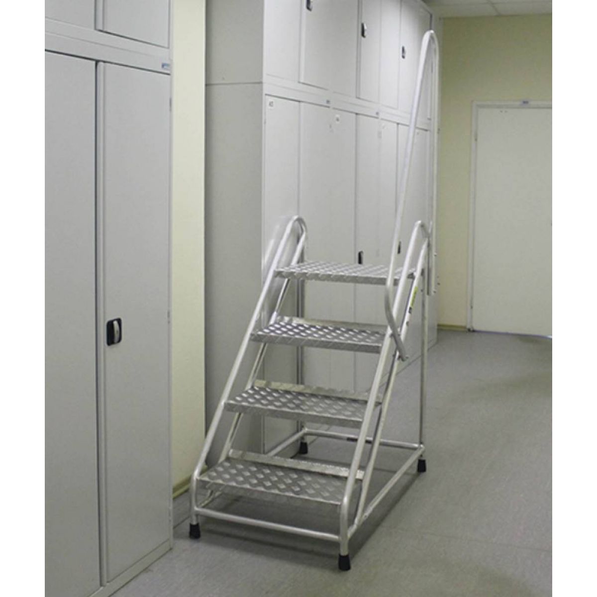 - Монтажная алюминиевая подставка (тип2) c 4 -мя ступенями и одним поручнем