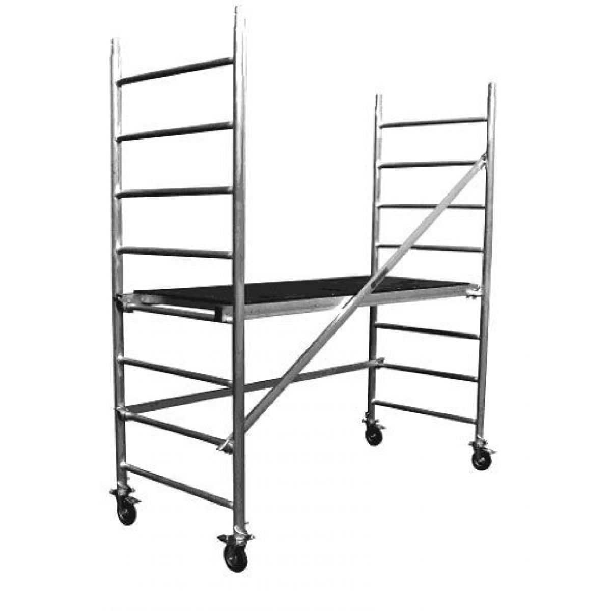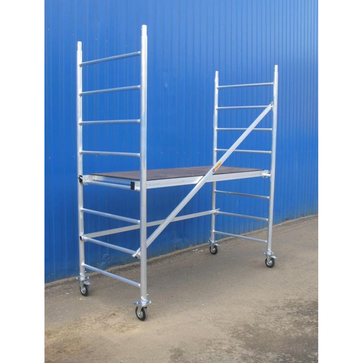 • Поворотные колеса со стопорами позволяют с легкостью перемещать подмости и зафиксировать на месте