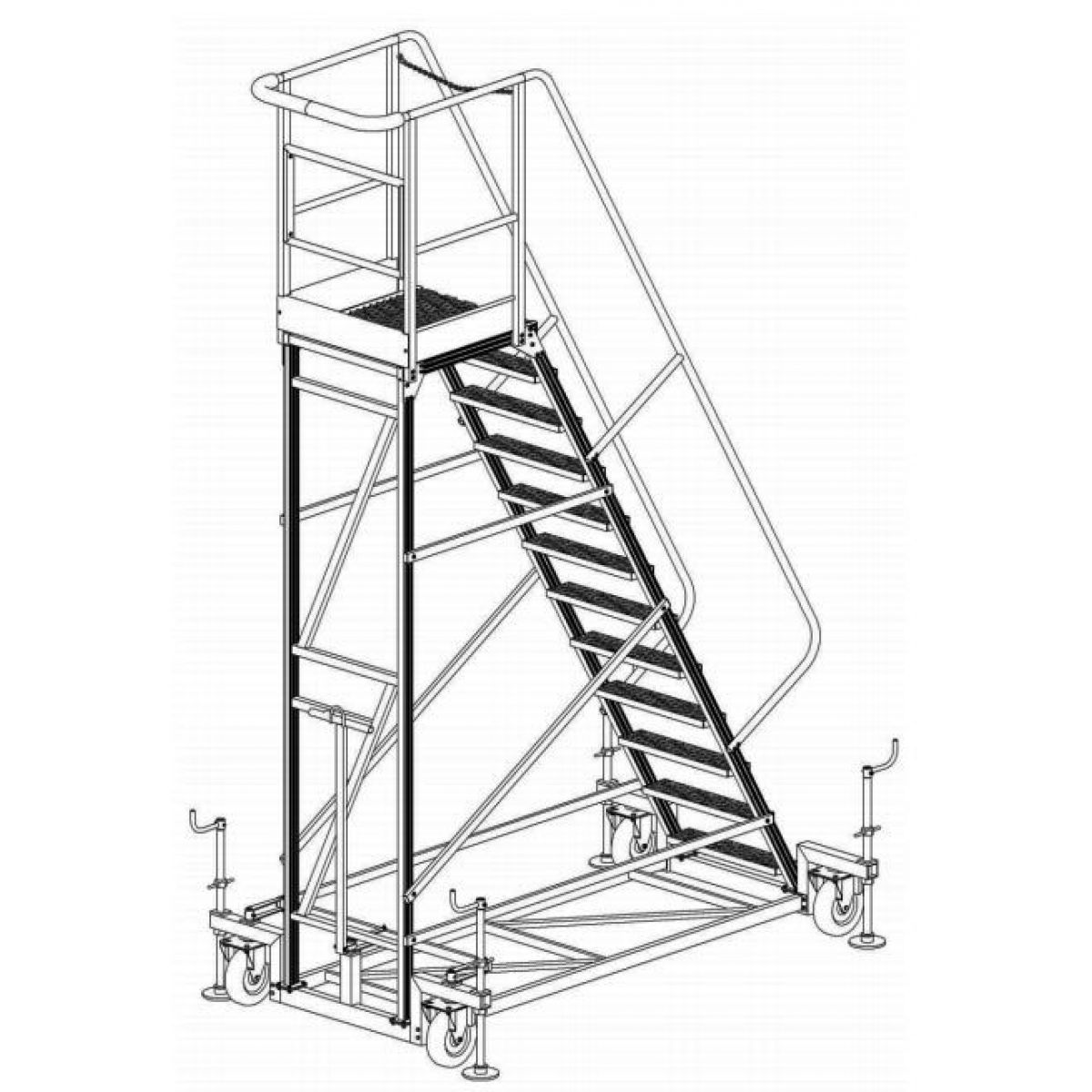 • Колесная база оснащена винтовыми домкратами и грузами, обеспечивающими устойчивость изделия при работе на высоте