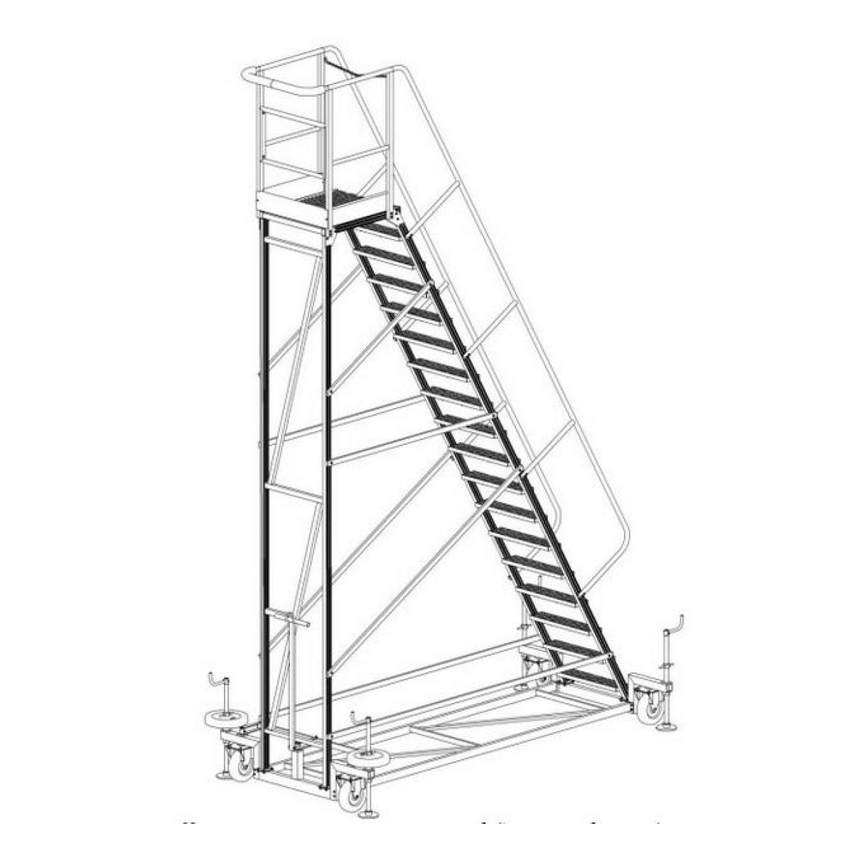 Колесная база оснащена винтовыми домкратами и грузами, обеспечивающими устойчивость изделия при работе на высоте