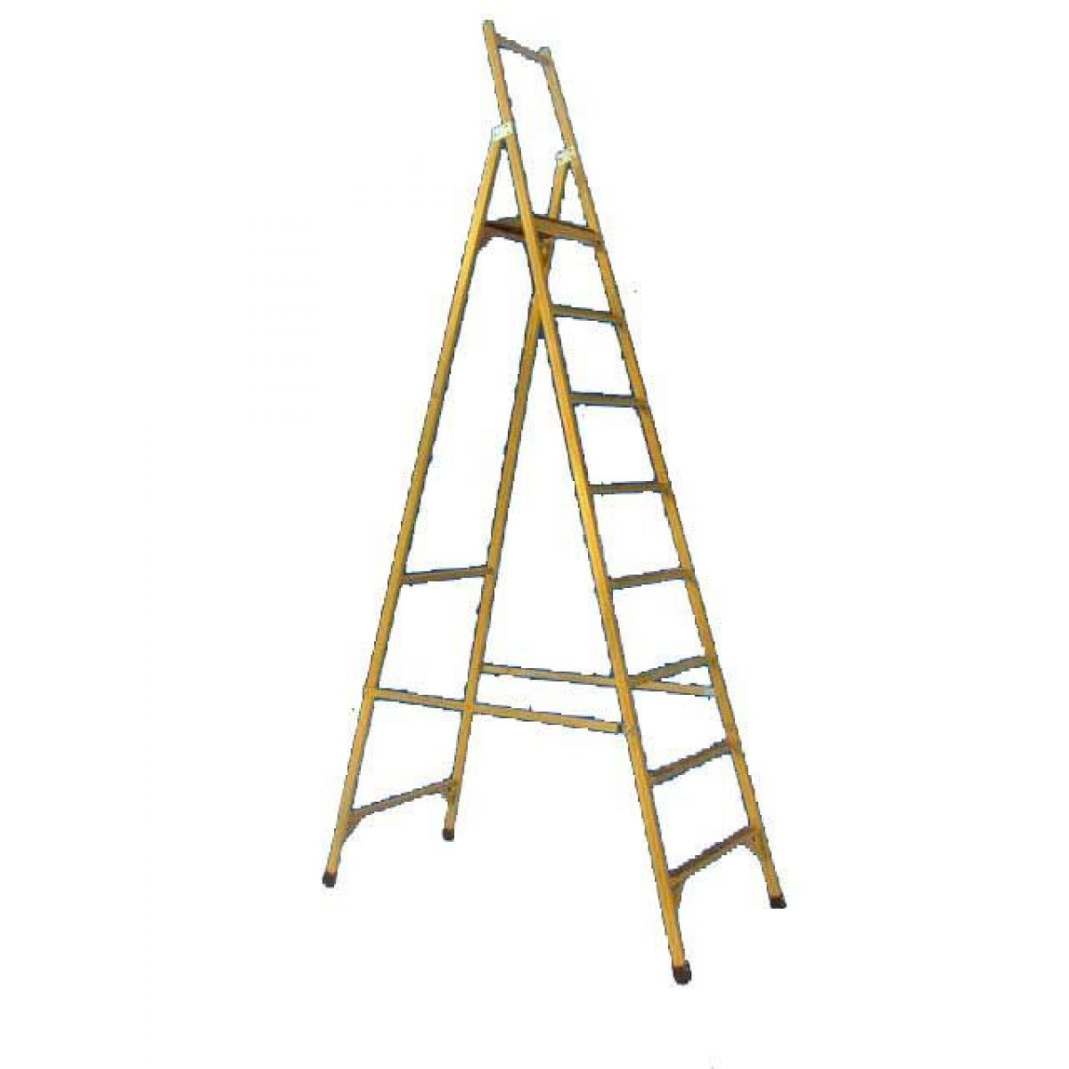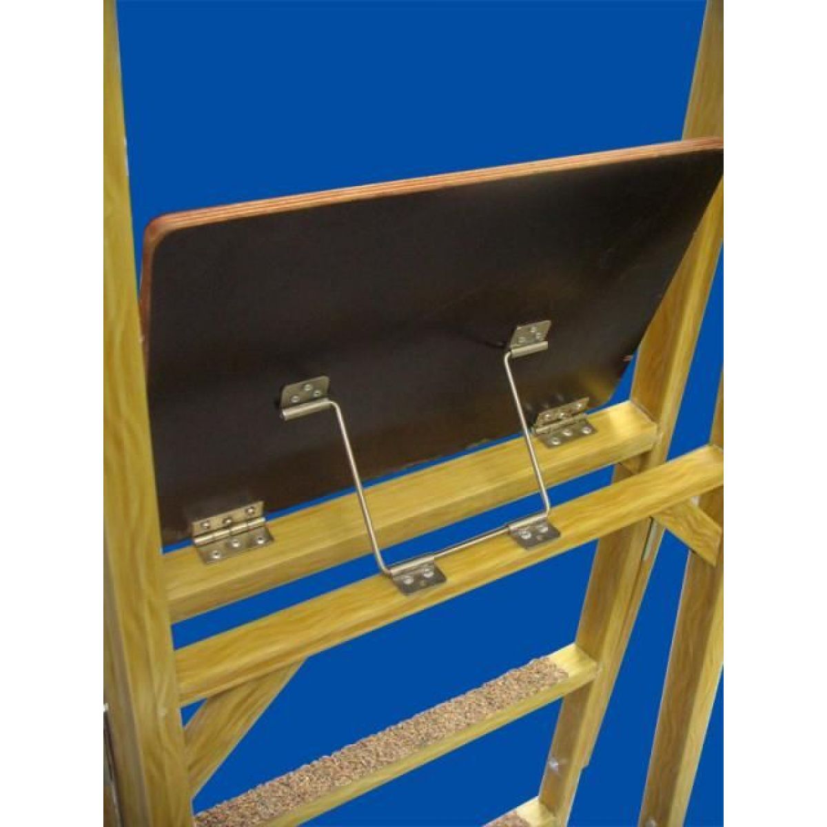 Тетивы лестничной секции удлиненны над рабочей полкой стремянки примерно на 90 см и жестко замкнуты между собой упором для рук.
