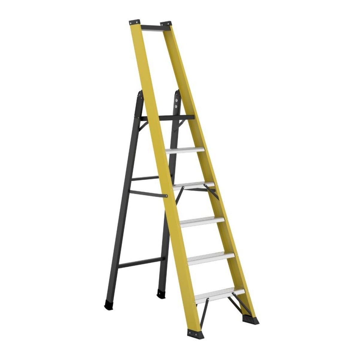 Стремянка с односторонним подъёмом, платформой и стяжками, обеспечивающими безопасность фиксации