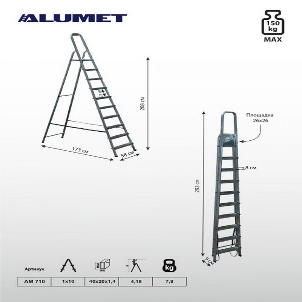 Стремянка бытовая 10 ступеней АМ710