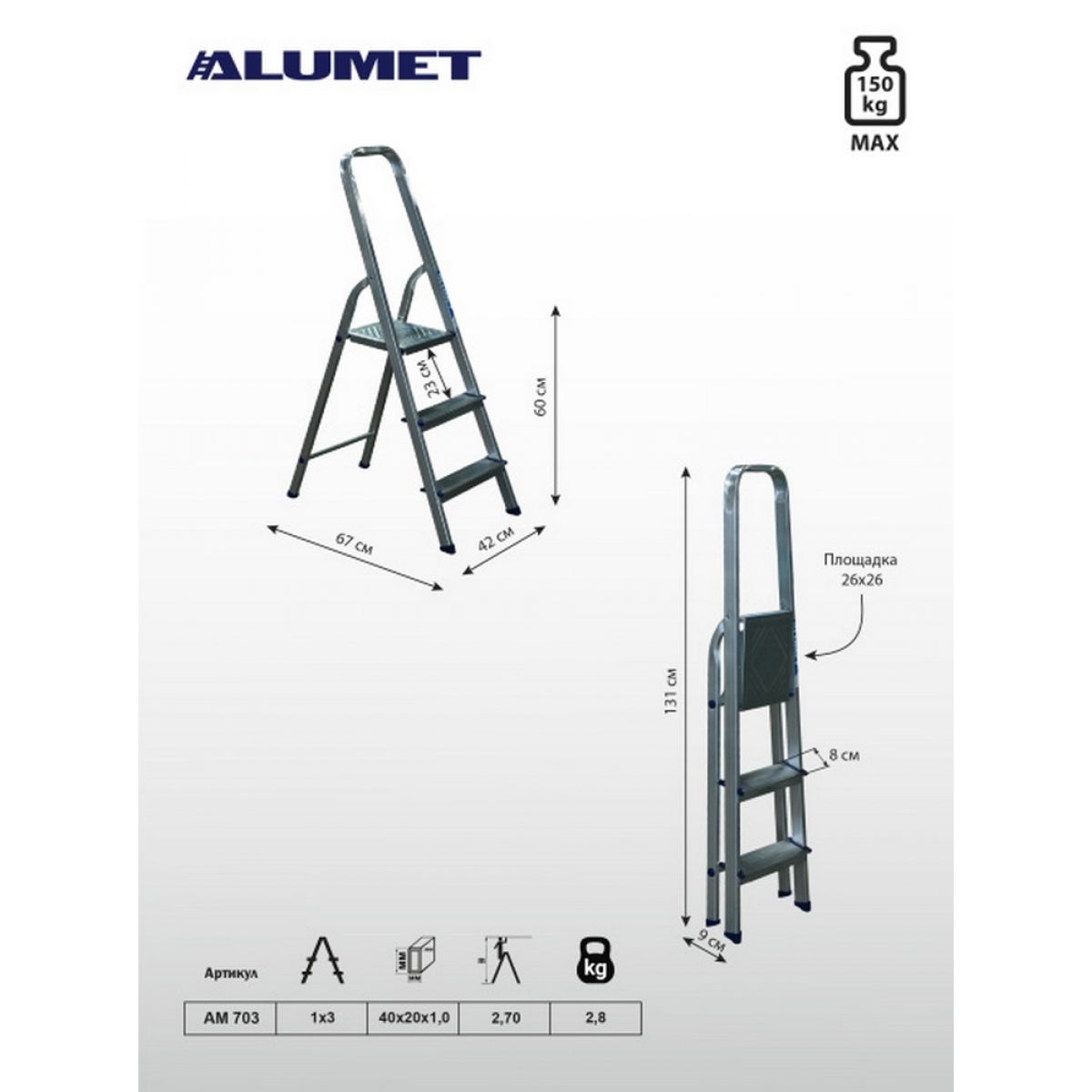 Стремянка бытовая 3 ступеней АМ703
